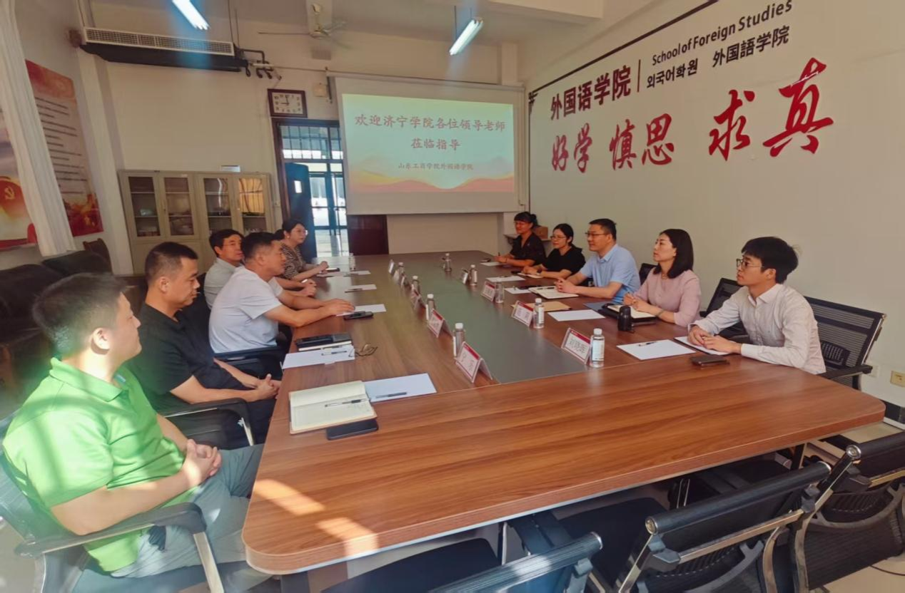 为加强院校学术交流与合作,共同探索新时代外语人才培养新模式,9月11日,外国语学院院长王朝杰、学术副院长范莉,商务英语系主任李霄露及骨干教师马晓丽和刘晓晖赴山东工商学院外国语学院开展学习交流。山东工商学院外国语学院院长崔洪海,副院长高延君、宁乐和骨干教师参加交流,山东省对外经济学会国际商务英语专业委员会会长刘白玉教授受邀参加本次活动。
