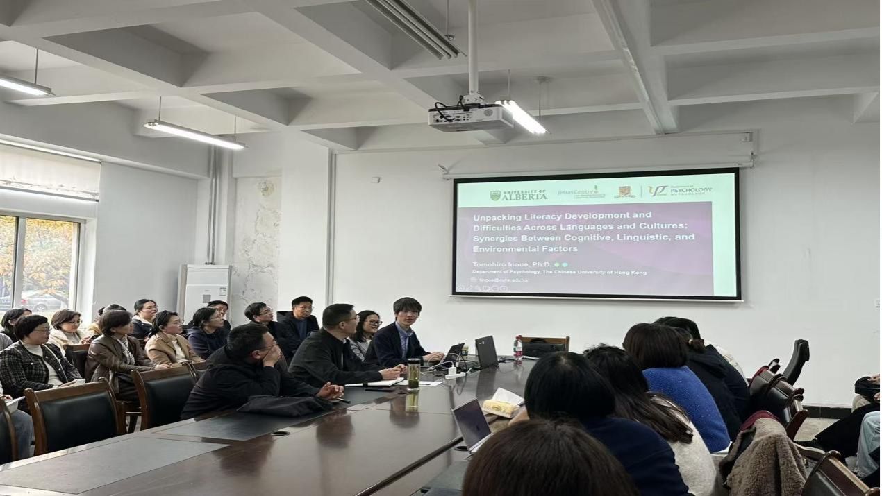 11月6日下午,赢博足球举办学术报告。香港中文大学心理学系助理教授Tomohiro Inoue受邀作题为“Unpacking literacy development and difficulties across languages and cultures: Synergies between cognitive, linguistic, and environmental factors”的专题分享。报告由学院院长王朝杰主持,学院全体教师参会聆听。