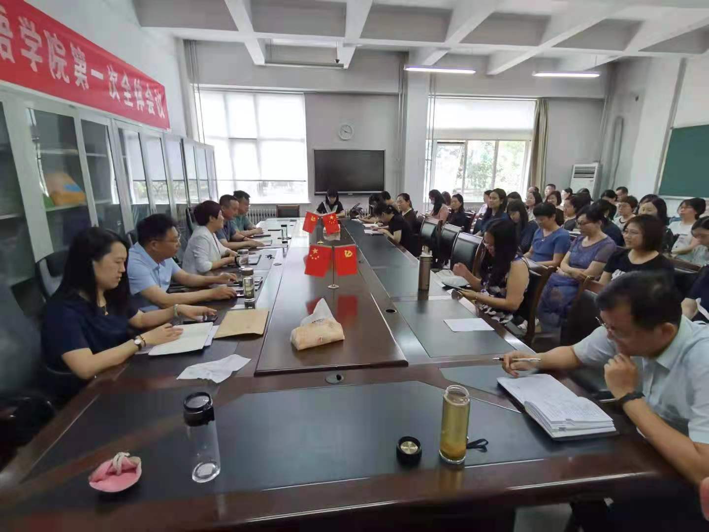 6月11日上午,外国语学院在三号楼一楼会议室召开会议学习传达上级文件及学校会议精神,并对近期工作进行安排部署,该院院长杨楠主持会议,全体教职工参加。