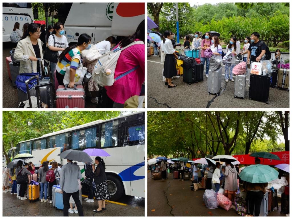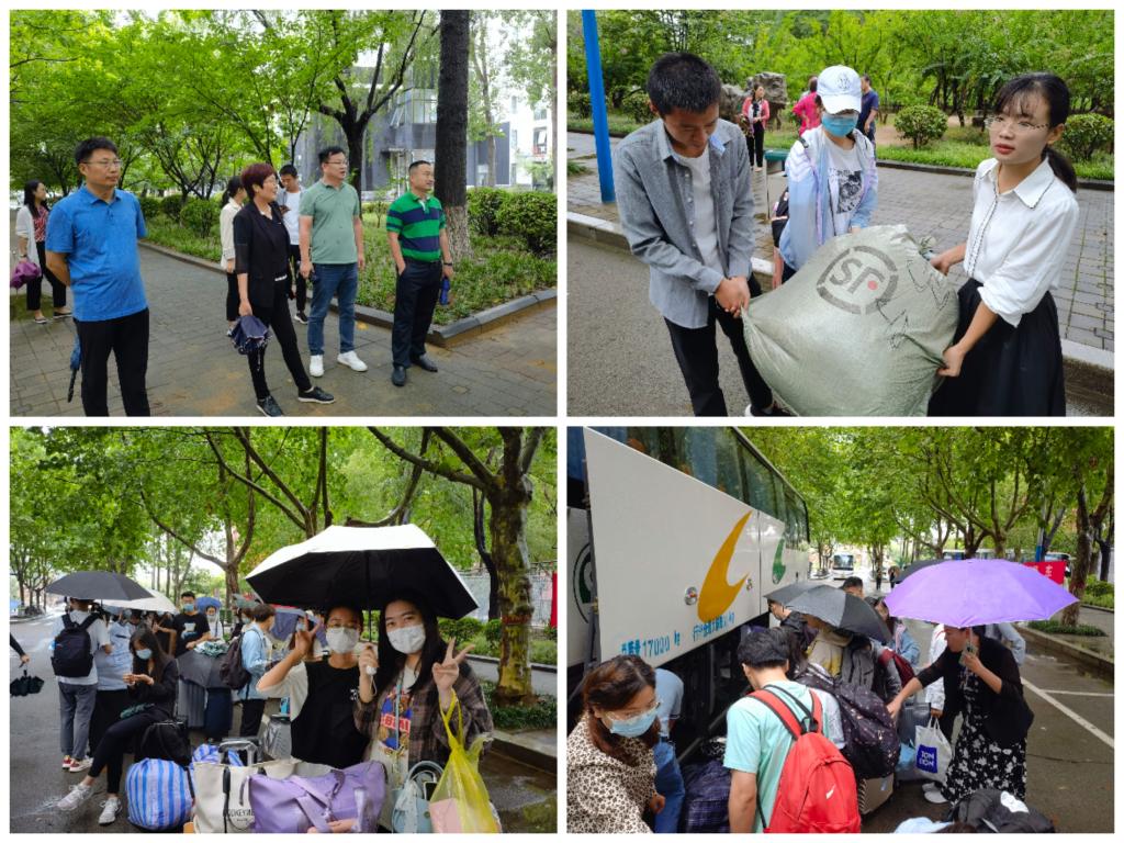 8月30日早上,外国语学院2019级英语教育专业的132名承担实习支教任务的学生在学校集合,乘车分赴各实习支教单位。外国语学院党委书记陆波,院长杨楠,党委副书记许言强,副院长张殿海、张颖,办公室主任闫彩霞及全体辅导员为实习生送行。