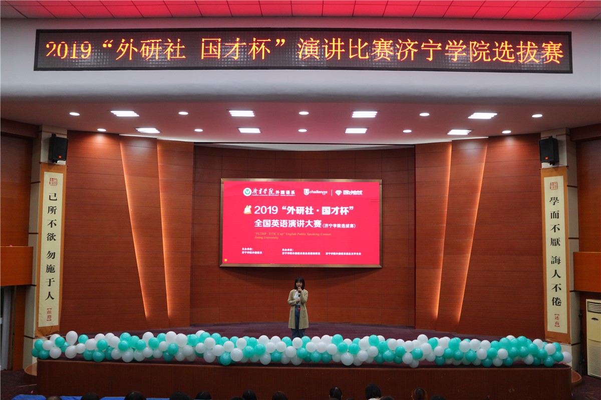 2019年10月16日晚6:30-8:30,2019年“外研社·国才杯”演讲比赛济宁学院选拔赛决赛在理科楼成功举办。外国语系主任杨楠、副主任张颖出席本次比赛,外国语系教研室主任邵敏、杨永兵和仇丽丽、孔迁迁、惠长征、王姿懿,外教Chris老师担任此次比赛评委。