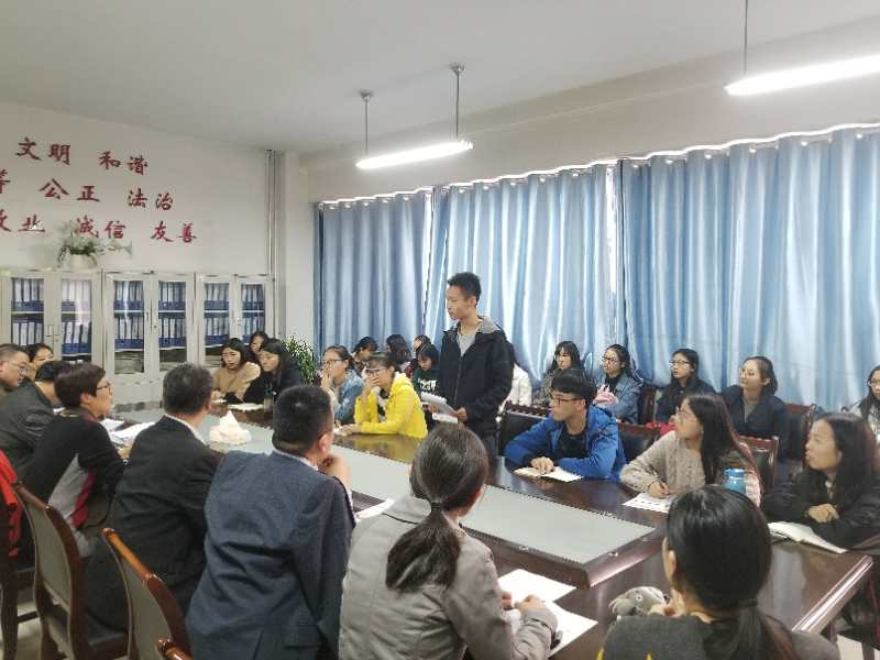 为进一步做好教学管理工作,及时了解教师和学生对教学运行、教学管理和教学服务方面的意见与建议,根据本学期期中教学检查工作安排,11月2日下午4:00-6:50,外国语系在三楼会议室召开了2018-2019学年第一学期期中教学检查师生座谈会。外国语系党政班子、各教研室主任、教学督导、教师代表、辅导员老师和全系本专科学生代表参加了座谈。座谈会由外国语系主任杨楠主持。
