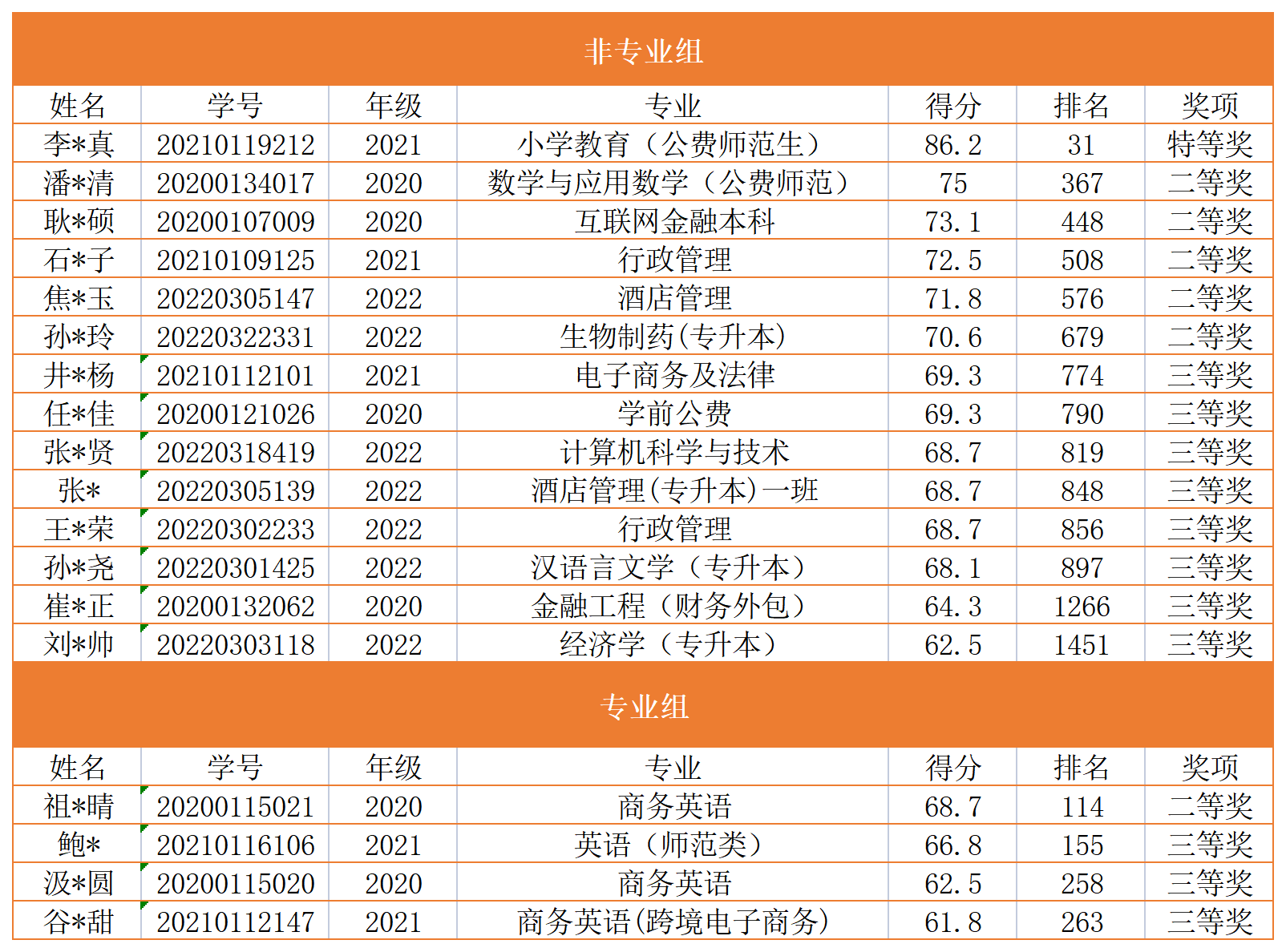 2023年外教社·词达人杯”全国大学生英语能力大赛山东省总决赛落下帷幕,我校共有专业组4人,非专业组14人获得省级奖项。其中2021级小学教育(公费师范生)李梦真荣获特等奖,成功晋级国赛。