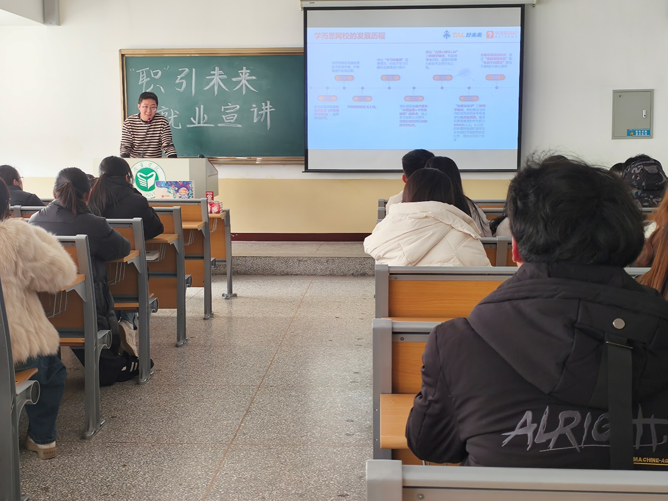 学而思网校的负责人以生动的讲解和精彩的视频,展示了企业的育人理念,讲解了岗位的职责要求、技能需求与晋升路径,介绍了企业优厚的薪酬福利体系、完善的培训机制以及丰富的员工活动。同学们就实习安排、专业技能提升、企业文化融入等踊跃提问,企业负责人耐心解答,充分展现了同学们浓厚的就业热情。