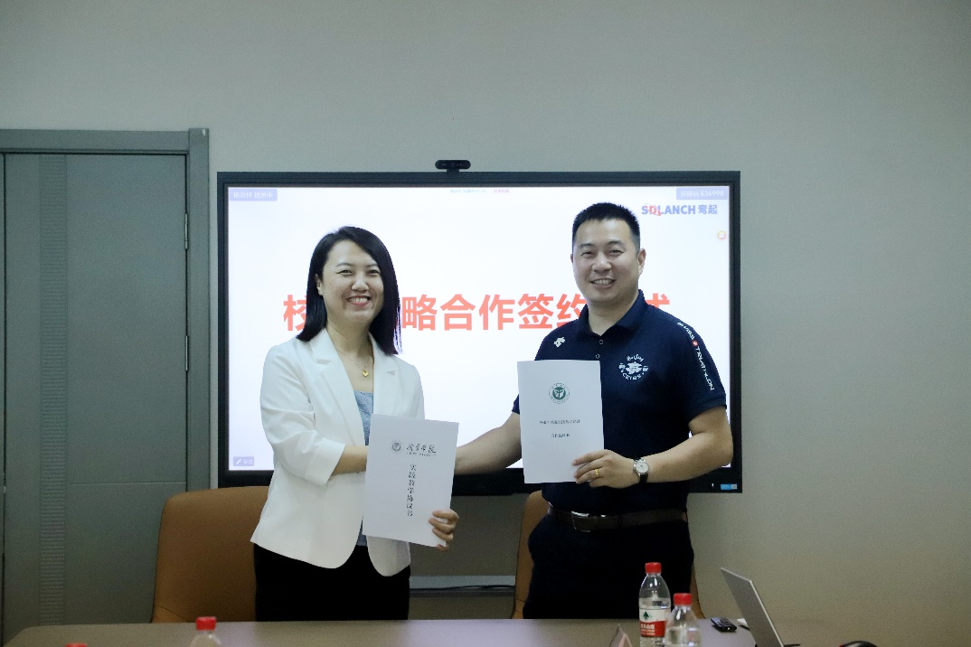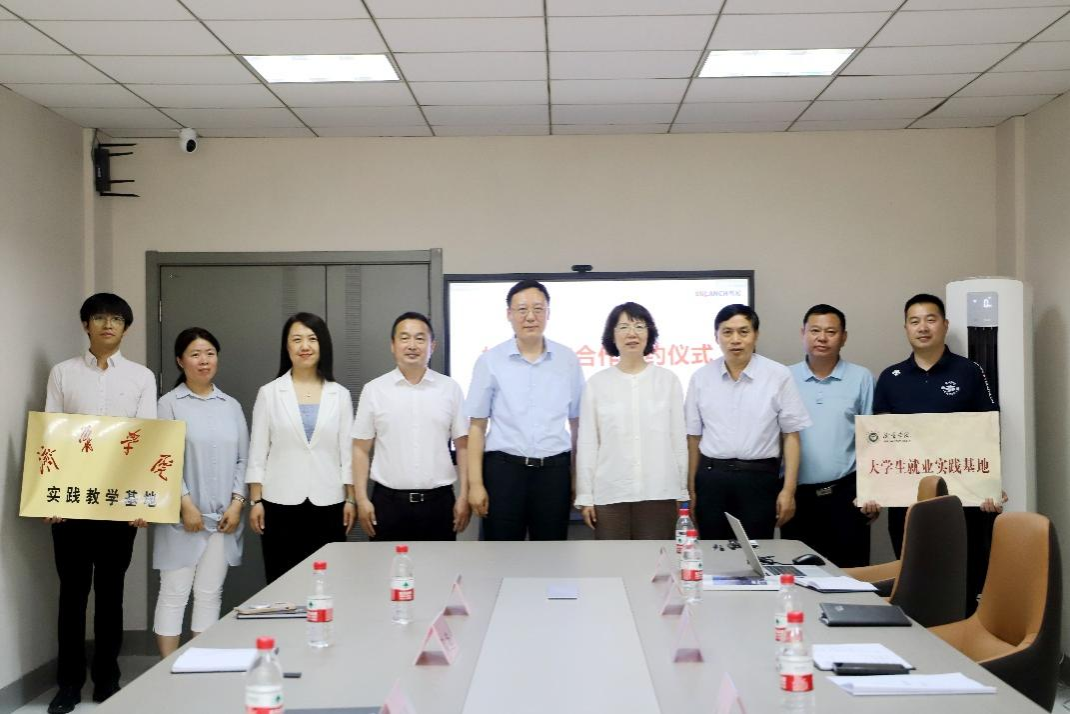 鸾起(山东)智能科技有限公司董事长贾标标表示,外国语学院2025届毕业生祝梦莹、刘琳琳在公司实习期间表现优异,已被录用并任命为外贸经理。他感谢学校输送的优秀人才,期待与学校加强合作,实现资源共享、优势互补,推动双方在共建平台团队、人才培养、实践教学等方面取得更大突破。会上举行了济宁学院实践教学基地、大学生就业实践基地签约授牌仪式。