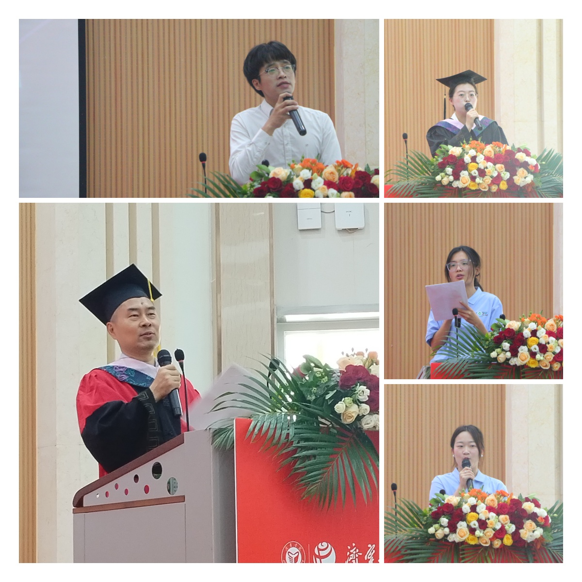 刘晓晖作为毕业班辅导员发言,他希望毕业生们永怀感恩之心,铭记母校的培养和师长的教诲;要坚定理想信念,敢想敢为、勇担责任,在奋斗中实现人生价值;更要保持终身学习的习惯,以不懈的追求充实自我。田清敏回顾了四年来与同学们共同成长的点点滴滴,她动情地说:"看着你们从青涩懵懂到成熟自信,这是教师最大的幸福。"她寄语毕业生要永葆求知热情,在未来的工作和生活中持续学习;要坚守道德底线,做一个正直善良的人;更要胸怀家国,将个人理想融入时代发展。