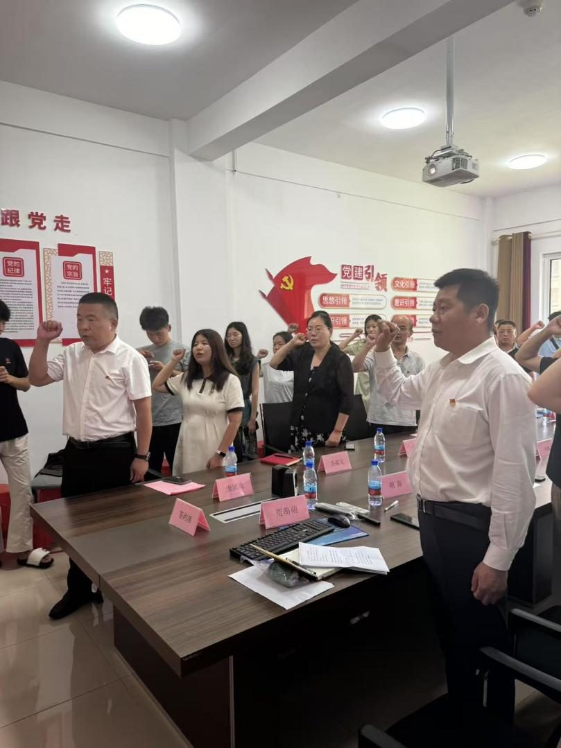 活动最后,全体党员整齐列队,面向鲜红党旗高举右拳,庄严重温入党誓词。铿锵誓言回荡在大厅,激励每一名党员回望初心、铭记使命,以实际行动为党的104周岁送上最诚挚的祝福。