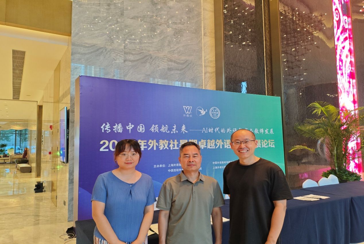 8月4日至7日,由上海外语教育出版社主办的“传播中国 领航未来——AI时代的外语教育与教师发展”暑期卓越外语教师发展论坛在山西太原成功举办。我院组织骨干教师吴瑞民、张金霞、张兴盛全程参与,通过学习前沿理论与实践经验,探索AI技术赋能外语教学的新路径。