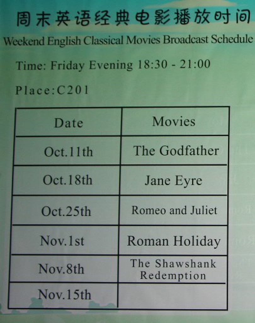 周末经典电影赏析预告(Oct.11th-Nov.15th)