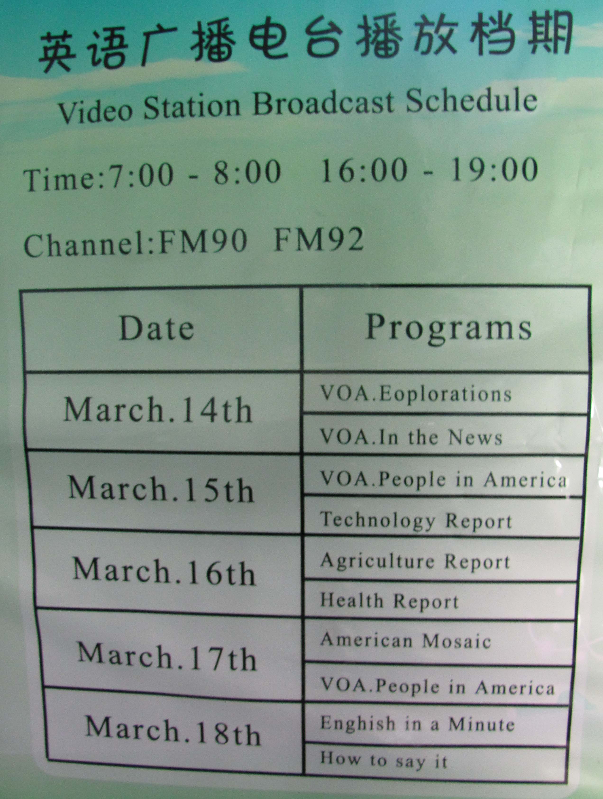 英语广播电台播放日程