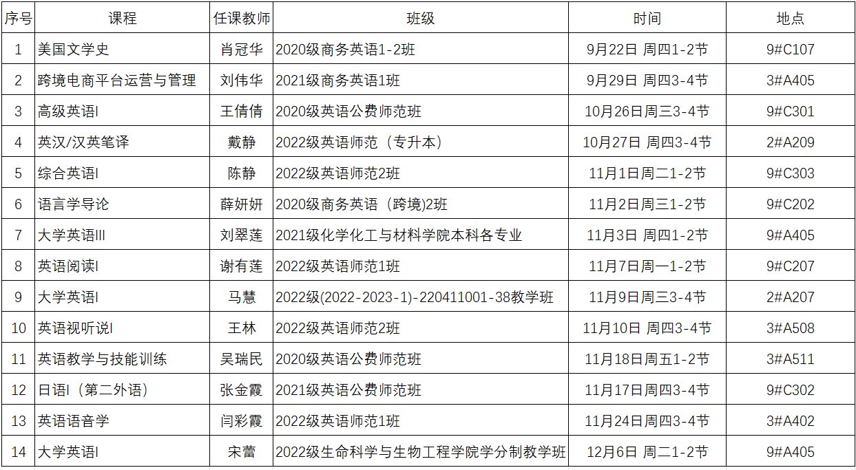 外国语学院2022-2023学年第1学期公开课安排表