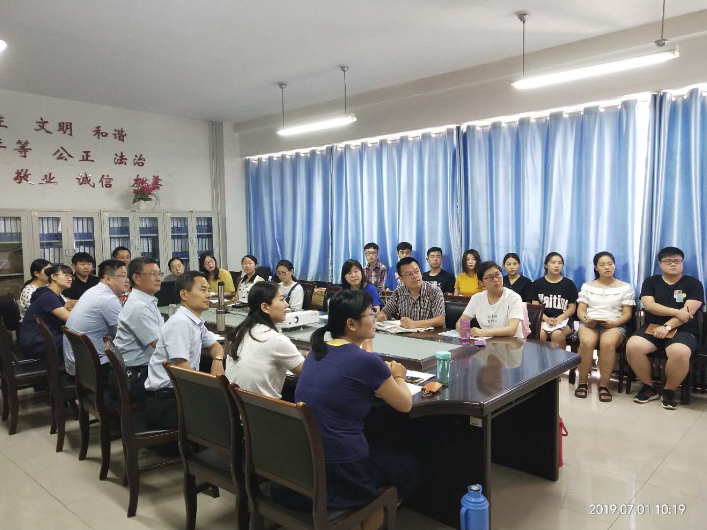 为深入学习贯彻《中国共产党党员教育管理工作条例》,结合开展“不忘初心、牢记使命”主题教育,2019年7月1日上午,外国语系组织全体党员在会议室收看了“灯塔大课堂”第一课,庆祝中国共产党成立98周年。