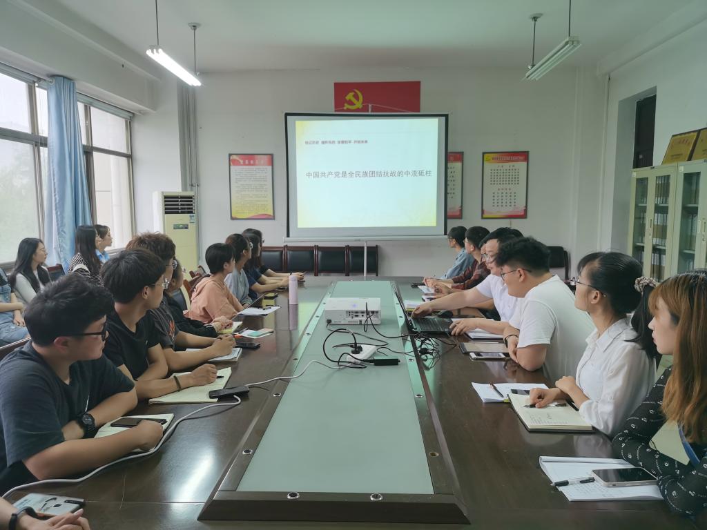 根据学校党史学习教育工作要求,5月13日下午,外国语系举办学习教育专题党课,党总支副书记许言强作“中国共产党是全民团结抗战的中流砥柱”专题辅导报告,全体辅导员、学生党支部全体党员参加。