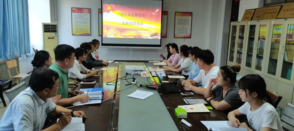 为庆祝中国共产党成立100周年,扎实推进党史学习教育,更好发挥基层党组织的战斗堡垒作用和党员的先锋模范作用,6月23日下午,外国语学院学生党支部在三楼会议室开展“我心永远跟党走”主题党日活动,外国语学院学生党支部全体党员参加。
