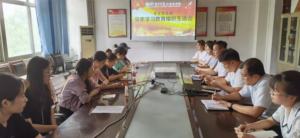 2021年7月2日,外国语学院学生党支部在3号楼A306召开党史学习教育组织生活会,党委副书记许言强、学生党支部书记姜璨、以及党支部全体党员参会。会议由学生党支部书记姜璨主持。