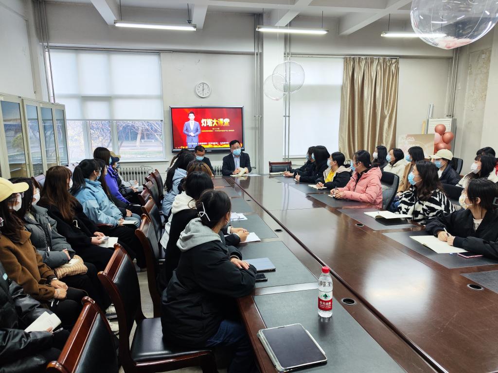3月25日下午,外国语学院学生党支部在三号楼一楼会议室集中学习 “灯塔大课堂”第二十八课《全省优秀党课展播——学习传承中国共产党人的精神谱系》,学生党支部部分党员参加。