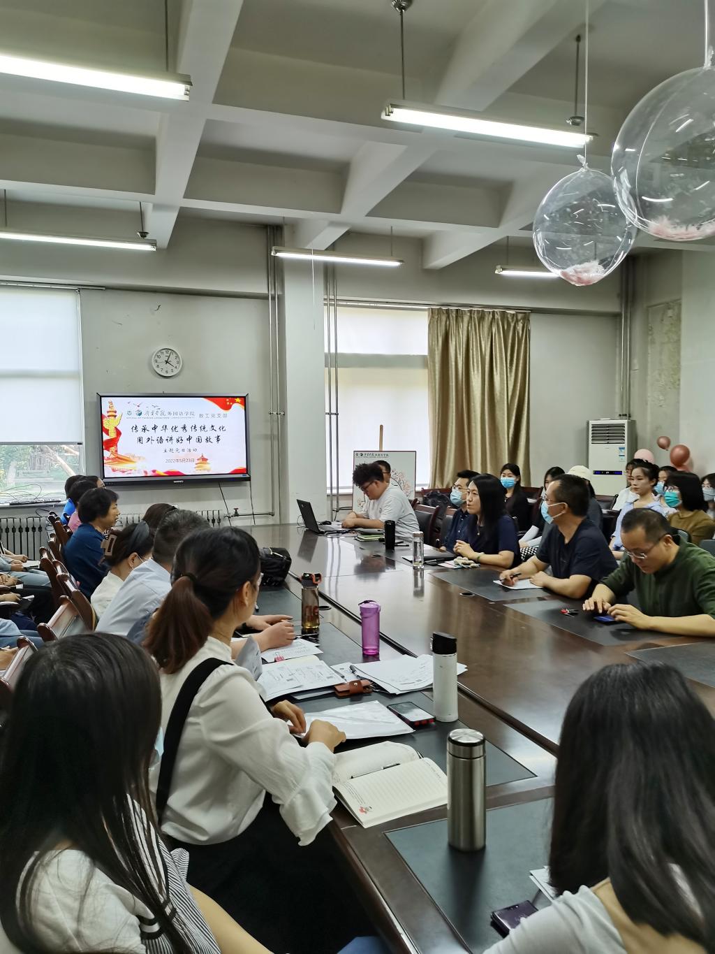 5月23日下午,外国语学院教工党支部结合教学工作实际,开展了师生有书共读第三期暨“传承中华优秀传统文化,用外语讲好中国故事”主题党日活动。外国语学院党委副书记许言强、教工党支部全体党员教师和学生代表参与此次活动,活动由教工党支部书记张颖主持。