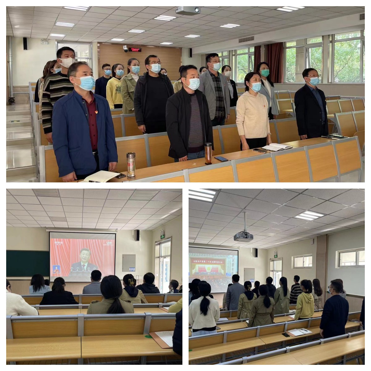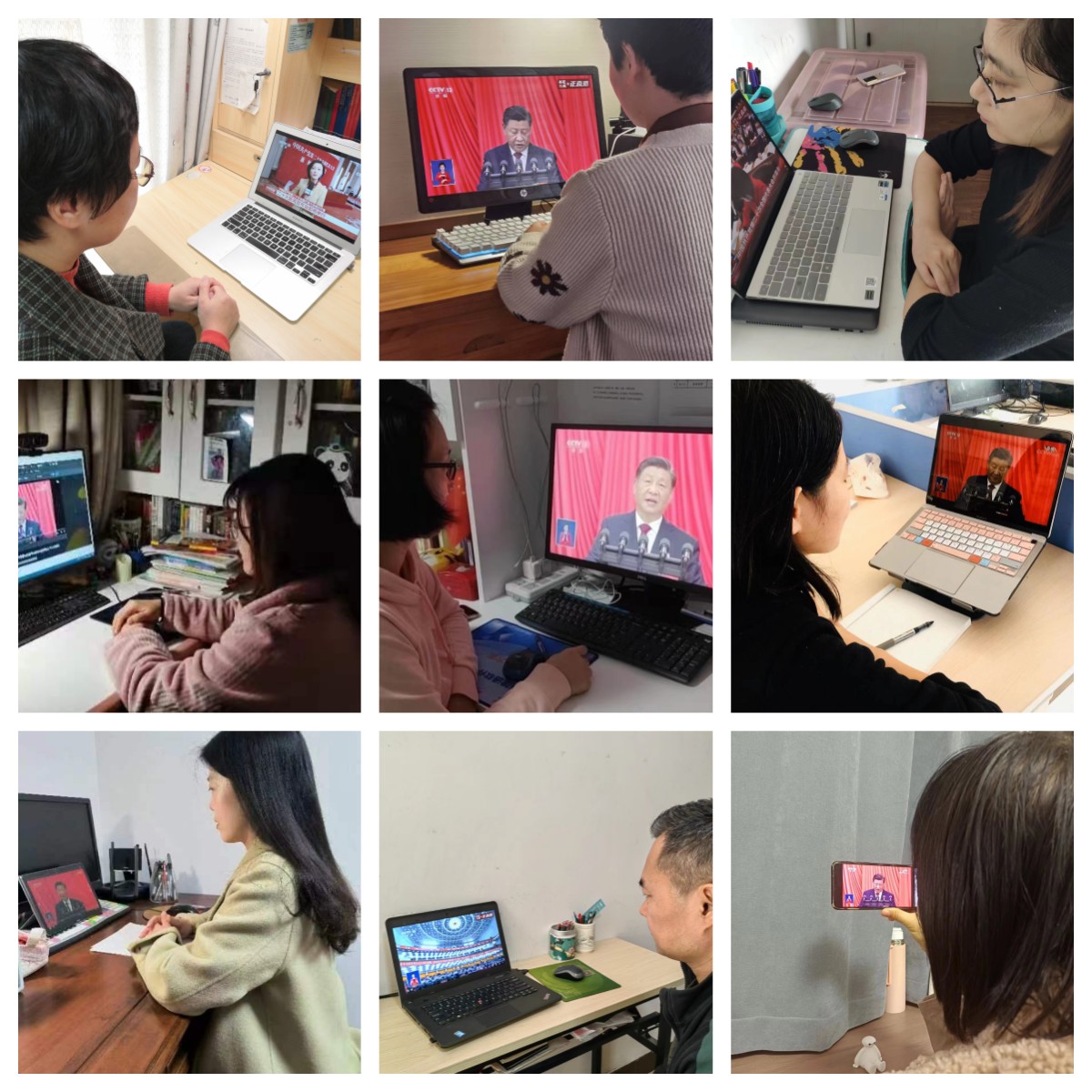 外国语学院广大师生热切关注大会盛况,学院党委组织全体师生第一时间通过线上线下聆听习近平总书记所作的报告,感悟新时代非凡成就、牢记新征程奋斗使命,砥砺爱党报国之志。外国语学院全体党政班子成员和老师们在智慧教室3C102集中观看了本次开幕式。因疫情原因不能返校的老师们,在家认真观看了此次大会。