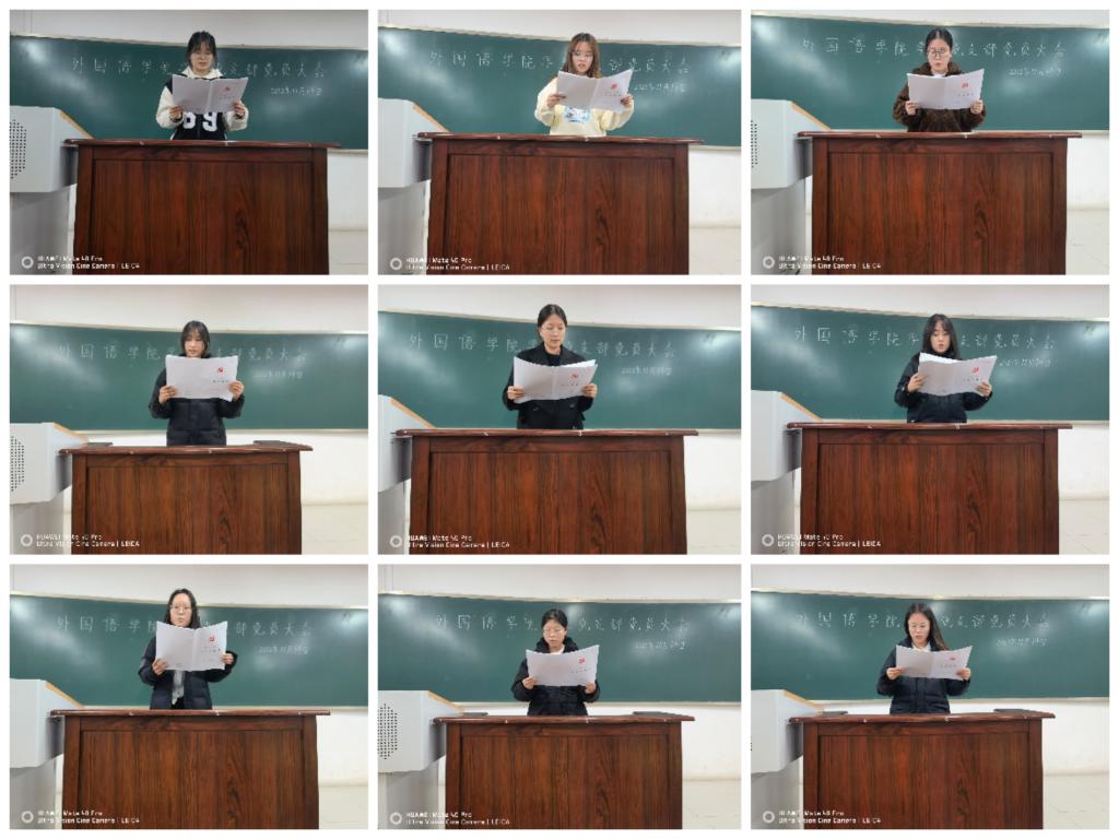 2022年11月14日下午,外国语学院学生党支部于3号楼A312教室召开接收预备党员大会。党委书记陆波、副书记许言强到会指导,会议由学生党支部书记姜璨主持。