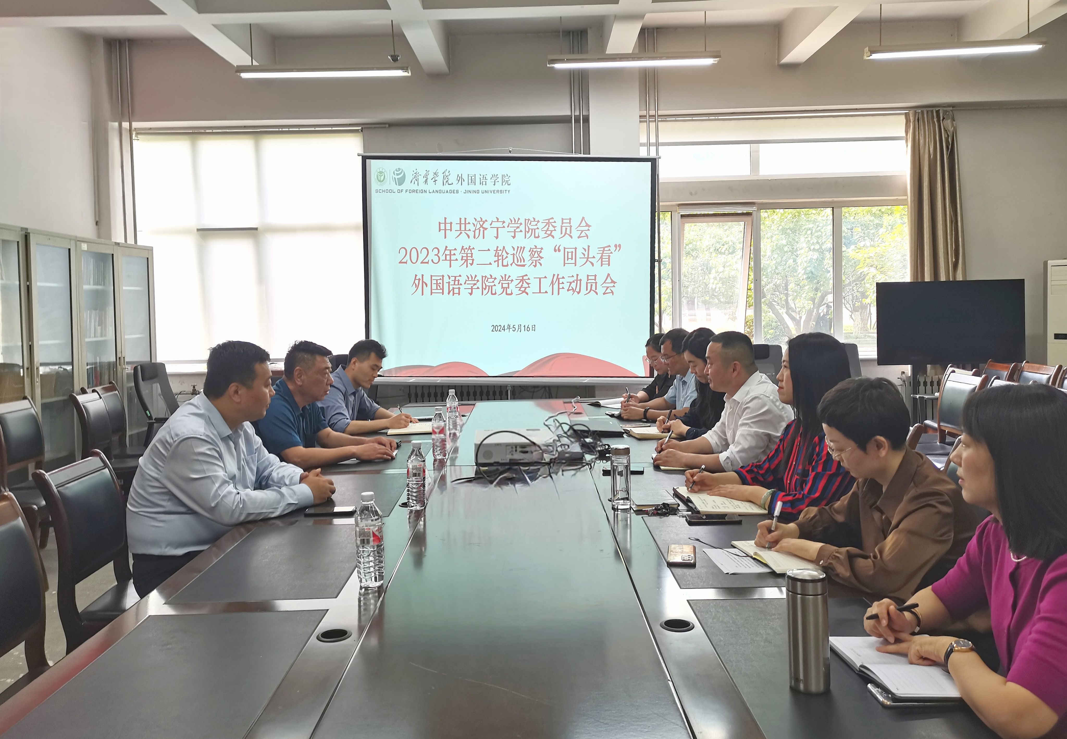 学校党委巡察“回头看”工作组全体成员,外国语学院党委领导班子参加会议。
