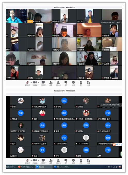4月21日晚7点,外国语系35名教师、辅导员和21名学生代表通过腾讯会议共聚云端,畅谈线上教学感悟和育人学习心得。