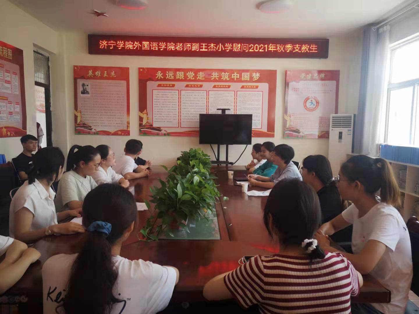 9月10日,在全国第37个教师节来临之际,外国语学院派出邵敏、耿瑞程、颜冬梅、李霄露等四位实习指导老师分赴邹城和金乡两地看望2019级英语教育专业实习支教的学生。四位老师分成两组分别行动。邵敏和耿瑞程两位老师一组去了邹城第十一中学、邹城市第二实验小学和邹城市钢山小学。所到之处,两位老师走进教室,深入课堂,详细了解支教学生的课堂教学情况,并与实习学校领导、指导教师和支教学生进行了座谈交流,支教学生扎实的专业功底和高度的敬业精神受到支教学校师生的一致好评。在金乡,颜冬梅和李霄露两位老师去了清华外国语学校、王杰小学、金乡三中、金曼克学校和金乡职业中专几个实习支教点。通过课堂听课、评课、与支教学生和实习学校领导座谈,全面了解支教学生的生活、工作状况和思想状态,鼓励他们尽快转变角色,勇于克服困难,主动适应新环境。