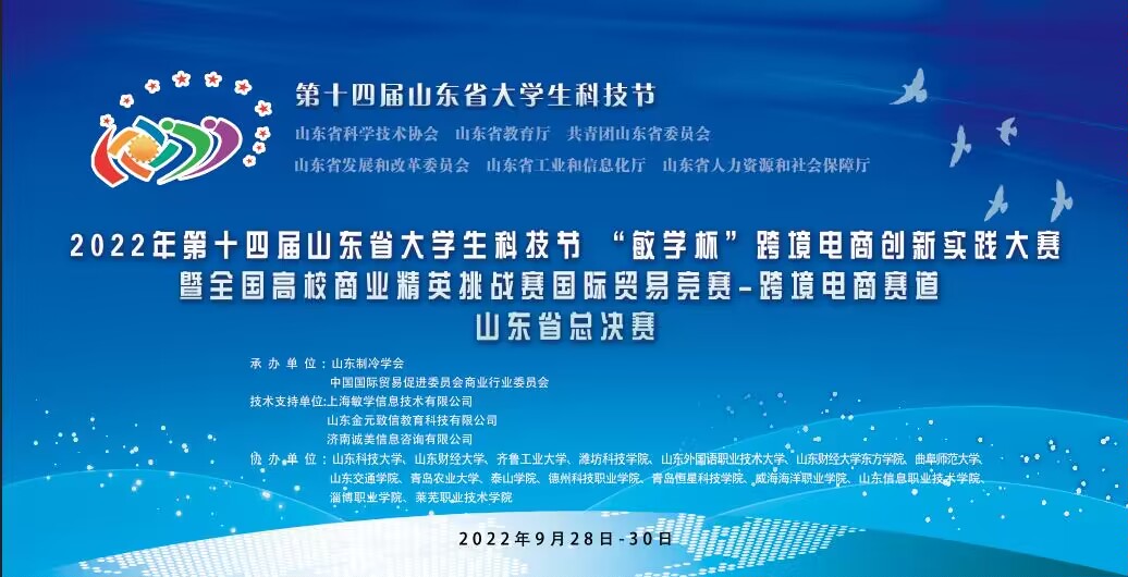 2022年9月30日,第十四届山东省大学生科技节“敏学杯”跨境电商创新实践大赛暨全国高校商业精英挑战赛国际贸易竞赛跨境电商赛道山东省总决赛落下帷幕,此次竞赛共有来自全省97所院校的7298名选手参赛。外国语学院派出的三支参赛队伍获得了2个省级一等奖、1个二等奖的优异成绩,获得一等奖的两支队伍被推荐参加全国总决赛。