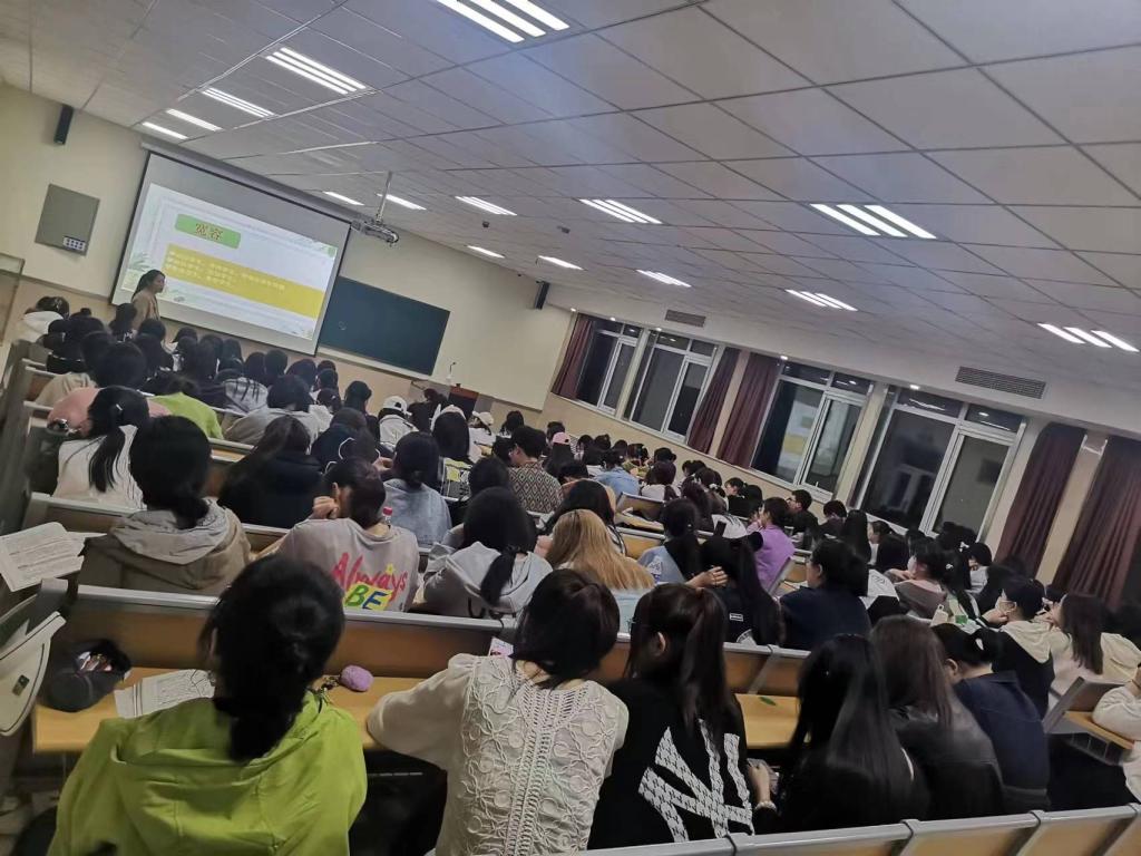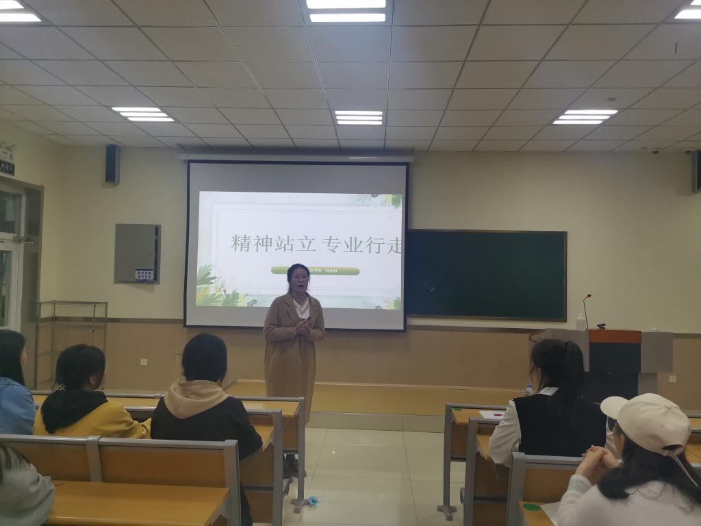2023年4月12日晚,外国语学院邀请曲阜东方学校德育部主任杜冉冉老师在3号楼C101作了题为“精神站立 专业行走 ”的讲座。讲座由姜璨老师主持,曲阜东方学校副校长杜放,部分教师代表,2021级、2022级本专科英语师范专业学生参加了此次活动。