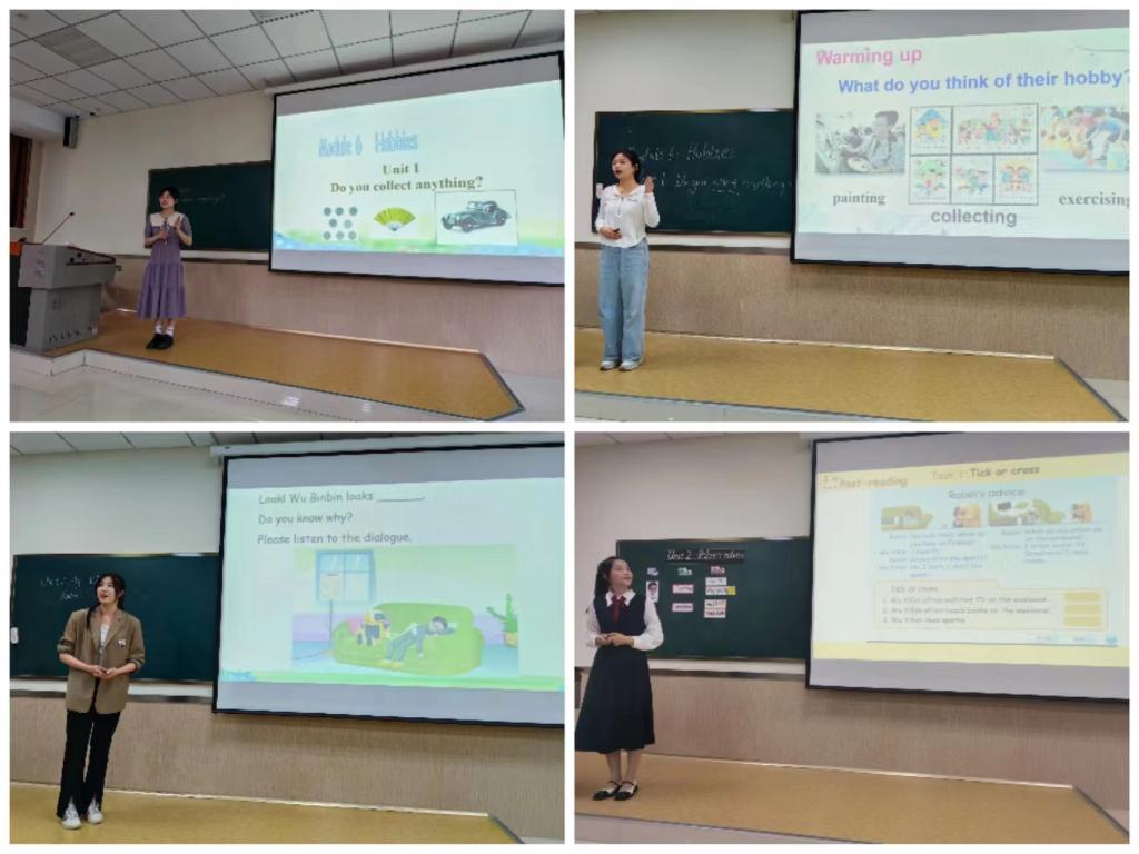 为方便在外实习的学生参加比赛,复赛采用了线上和线下结合的形式,分别于5月7日和8日晚成功举办。比赛开始后,选手们借助PPT和板书两种教学辅助手段,通过流畅的英语口语展开了模拟教学活动。每位选手都为此次比赛做了充足的准备,他们的语言表达生动,教学设计合理,教态自然大方,展现出了师范生良好的精神风貌。