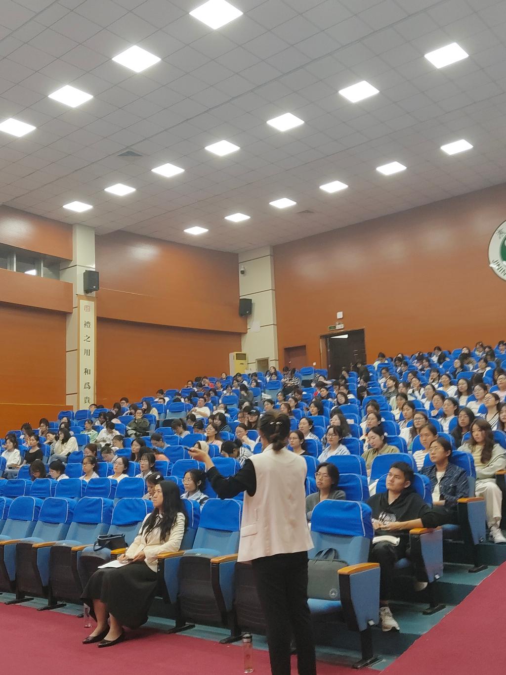 9月27日晚,外国语学院在理科楼报告厅开展“名师·名校长进校园” 暨师范生从业技能培养工作坊第十七期活动,本次活动由外国语学院和教务处联合主办,邀请曲阜市东方学校副校长孔令艳作了题为“基于《标准》的教学建议及案例分析”的报告。报告会由外国语学院副院长张颖主持,部分教师代表和英语师范专业大二至大四300余名学生参加了此次活动。