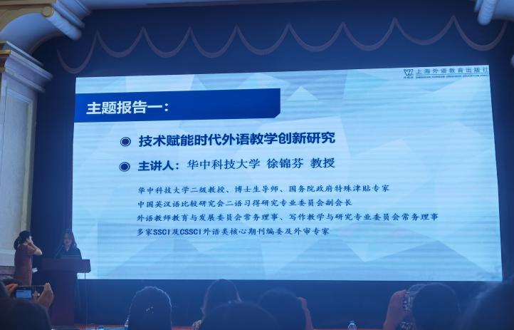 华中科技大学徐锦芬教授作了《技术赋能时代外语教学创新研究》报告。徐教授首先总结了新时代大学英语教学具有的新特征,详细介绍了技术赋能下外语教学研究的主题与方法,然后通过实证研究案例具体分析研究的主题和方法,接下来总结了技术赋能下大学英语教学研究论文写作注意事项。徐教授的讲座语言平实,却干货满满,让参会教师受益匪浅。