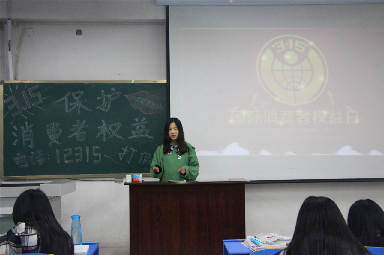 活动伊始,主持人向大家详细介绍了3.15的含义,加深了同学们对3.15国际消费者权益日的了解。精彩的演讲以及切实的消费经验,使同学们进一步了解了生活中的消费现象。新颖别致的PPT,维护消费者合法权益的视频,更是激发了同学们的学习热情。同学们就如何维护消费者合法权益等问题进行交流互动,并提出合理的消费建议。最后,同学们纷纷表示收获良多,在以后的生活中定当擦亮眼睛,提高自己的维权意识和维权能力。此次活动圆满结束。