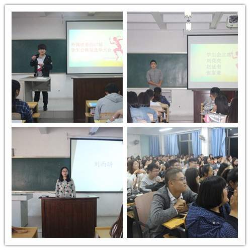 10月24日下午4:00,外国语系团总支、学生会换届选举大会在我系多媒体教室A211和A311举行。团总支、学生会现任全体成员,2016、2017级全体班委成员及部分学生代表共同参加此次换届大会。