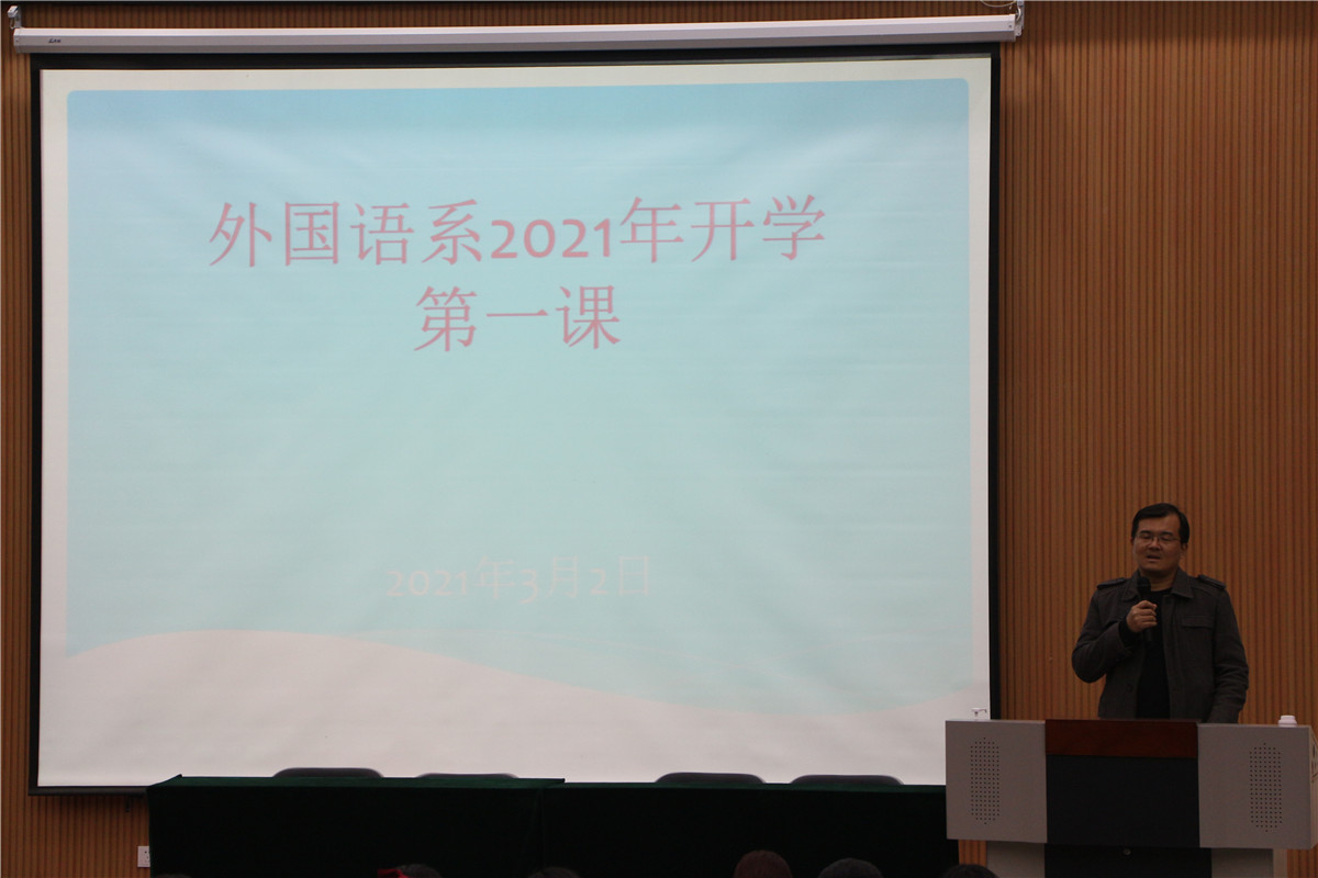 3月2日晚,外国语系2021年春季学期“开学第一课”在3号楼报告厅顺利进行。2018级、2019级及2020级学生分别参加学习,系党总支副书记许言强主持,各年级辅导员参加了活动。