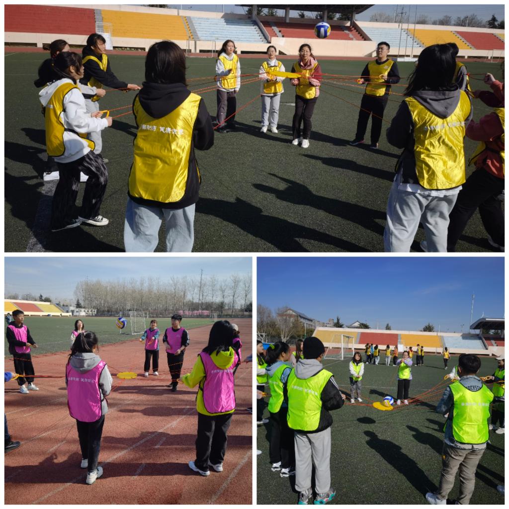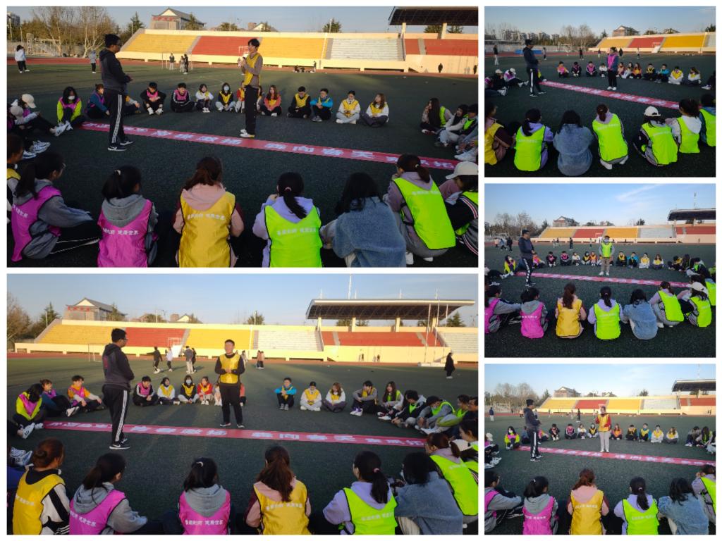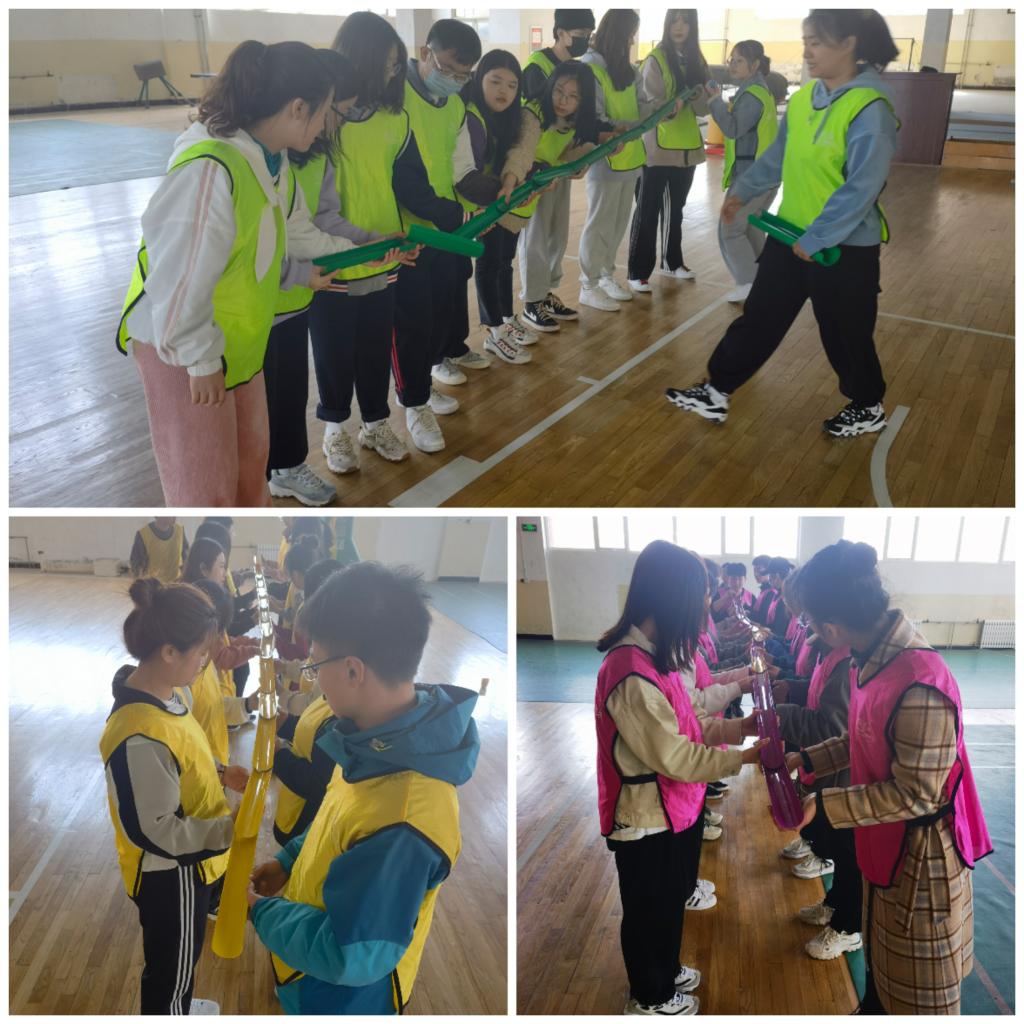 活动启动前,外国语系党总支副书记许言强说明了活动的意义及各项要求,希望同学们珍惜这次素质拓展机会,相互配合协作,确保圆满完成训练任务。这次拓展训练邀请鲁南制药集团劳动人事部赵恒民、徐阳作为指导教师,全程负责训练的开展。针对我系大学生实际情况,指导老师设计了相应培训课程,通过精心设计的活动达到“磨练意志、陶冶情操、完善人格、熔炼团队”,增加同学们快乐能量的培训目的。拓展训练前,指导老师组织同学们用小游戏进行热身,并要求发挥团队智慧,各队设计队名、队歌及队标,并鼓励大家在团队中,只有信任自己的队友、用心思考最有效的方法,才能够让资源发挥最好、能力发挥最大。本次训练共有八个小项,活动热身中通过老师的激情呐喊激起了同学们的热情,同学们慢慢情绪调动起来了,脸上紧张的表情逐渐变为笑容和兴奋。在接下来的“击鼓颠球”、“激情节拍”、“不倒森林”等环节中,所有的拓展训练项目都要求在指定的标准内完成,目的在于让同学们在高压力下如何通过团队沟通和思考解决问题、培养团队行动力和执行力,培养沟通协作能力及连续作战的韧性;增强责任心和队友之间的信任;培养同学们团结一致、密切配合,战胜困难的团队精神和团队组织力、凝聚力、协调力。