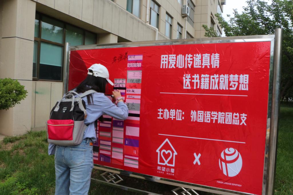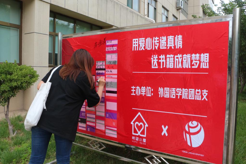 捐赠书籍种类丰富,包括儿童读物、历史书籍,绘画本,英语报刊、文学书籍等。同学们在扉页写上了赠言和对儿童真诚的祝福语,把爱心通过一本本充满墨香的书籍传递给“希望小屋”的儿童。