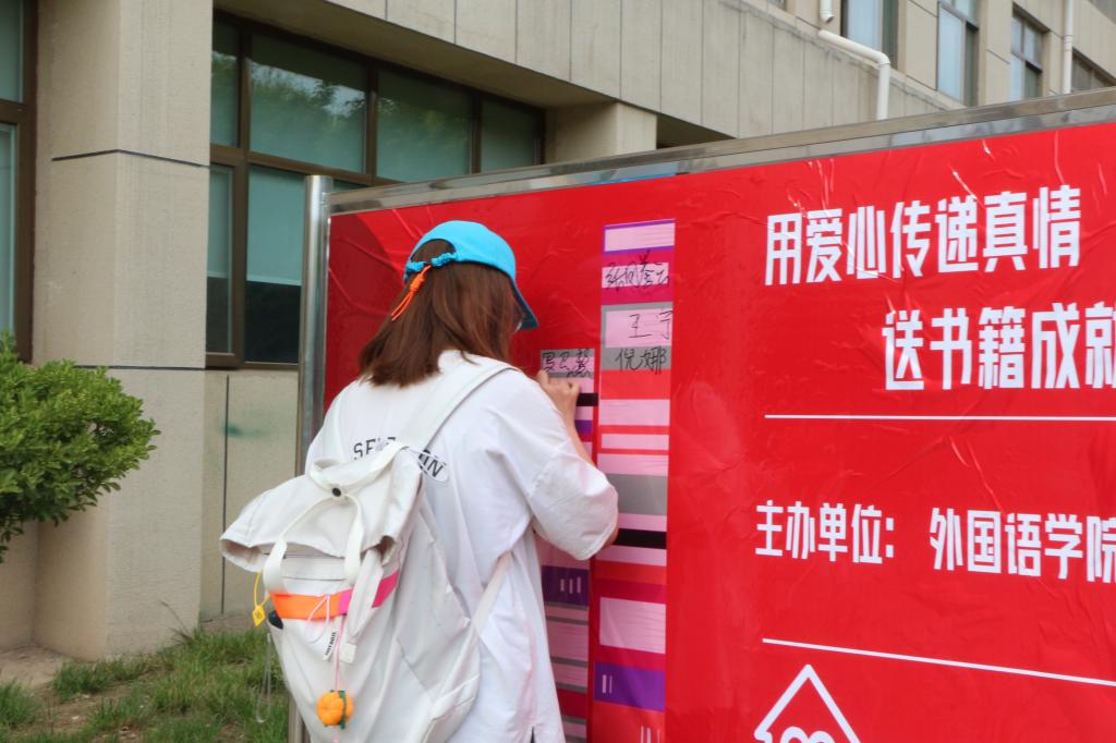 为弘扬志愿服务精神、传递爱心,5月25 日,以“用爱心传递真情,送书籍成就梦想”为主题的捐赠书籍活动在三号楼前广场举行,各年级同学积极参与。