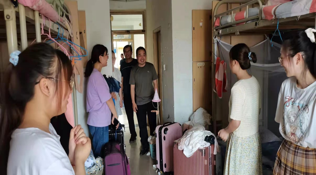 为做好我院毕业生安全文明离校工作,我院领导高度重视,为切实做好安全教育管理工作,努力提高学生的安全防范意识,将安全教育和文明离校的责任逐级落实到班级和每一个学生, 6月19日,我院党委书记陆波带领毕业班辅导员走访学生宿舍,排查安全隐患,了解毕业生就业、生活情况,询问毕业生离校手续办理情况,摸清其思想动态,尽可能为毕业生排忧解难。切实把毕业生返校、离校各项工作抓实、抓细,让毕业生充分感受到学院的人文关怀与关爱。党委书记陆波指出要明确工作、落实到位,认真谋划、深入推进,确保毕业生返校各项工作细致有序进行。副书记许言强部署2021届学生返校具体工作,根据《外国语学院2021届毕业生返校工作安排》,毕业生返校工作组要明确任务到人、熟知工作流程、提高工作实效、深化师生情谊、营造毕业氛围、体现暖心关怀、热情周到服务。