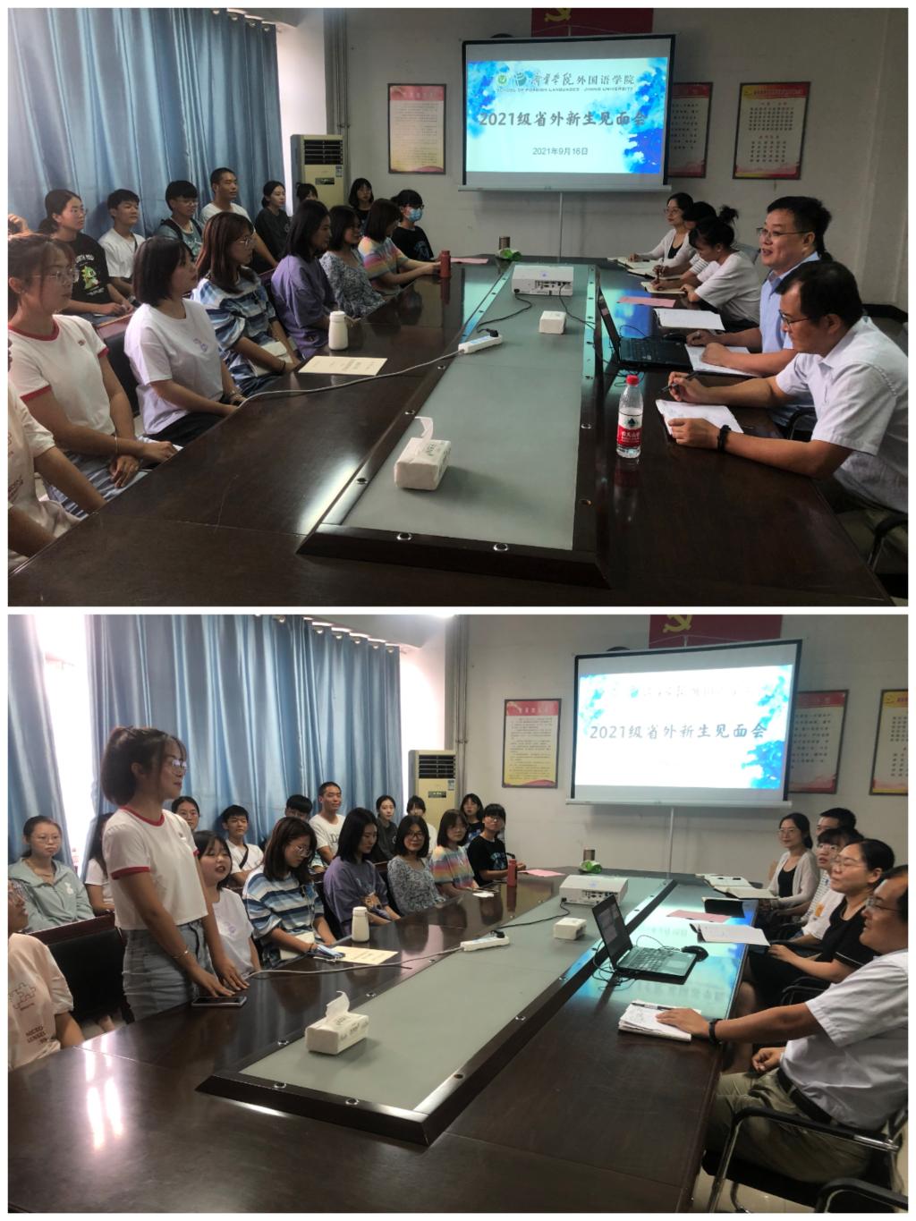 9月16日下午,外国语学院在三号楼A306召开2021级省外新生见面会,党委副书记许言强、全体辅导员及23名2021级省外新生参加。