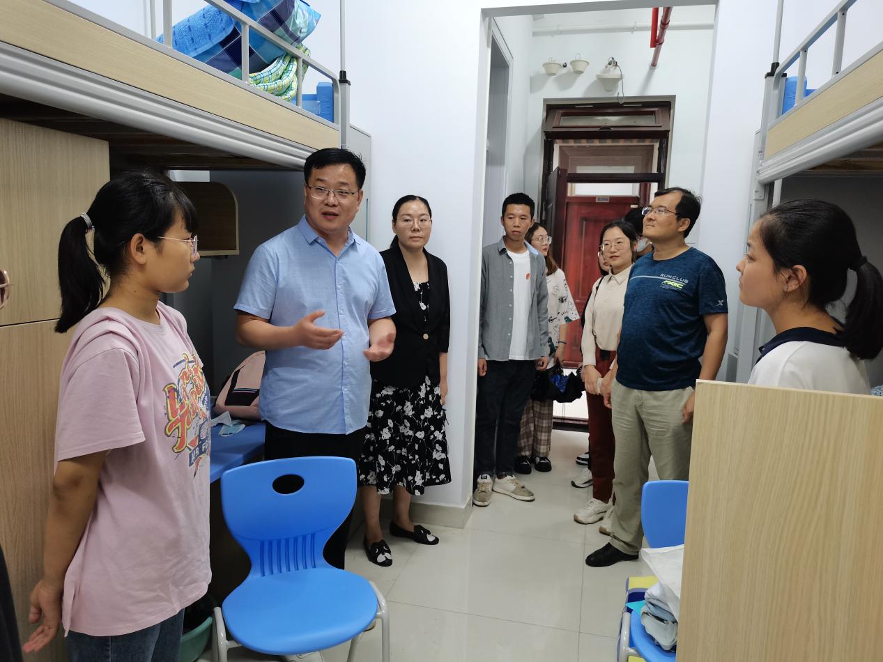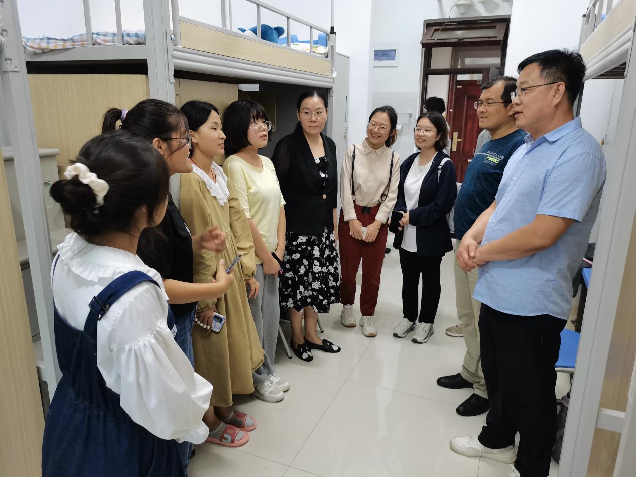 9月18日晚,外国语学院党委副书记许言强带领全体辅导员深入学生宿舍,看望2021级新生。