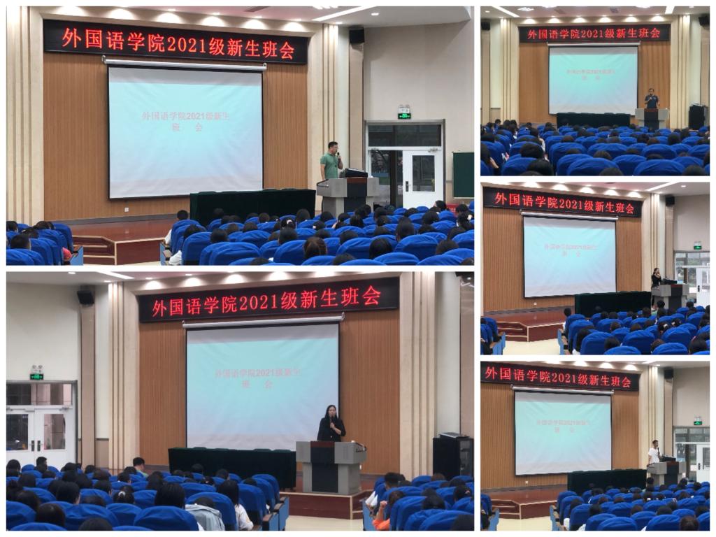 9月19日下午,外国语学院召开2021级新生见面会,党委副书记许言强、全体辅导员及2021级全体新生参加。