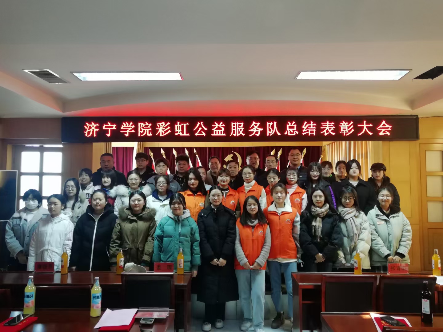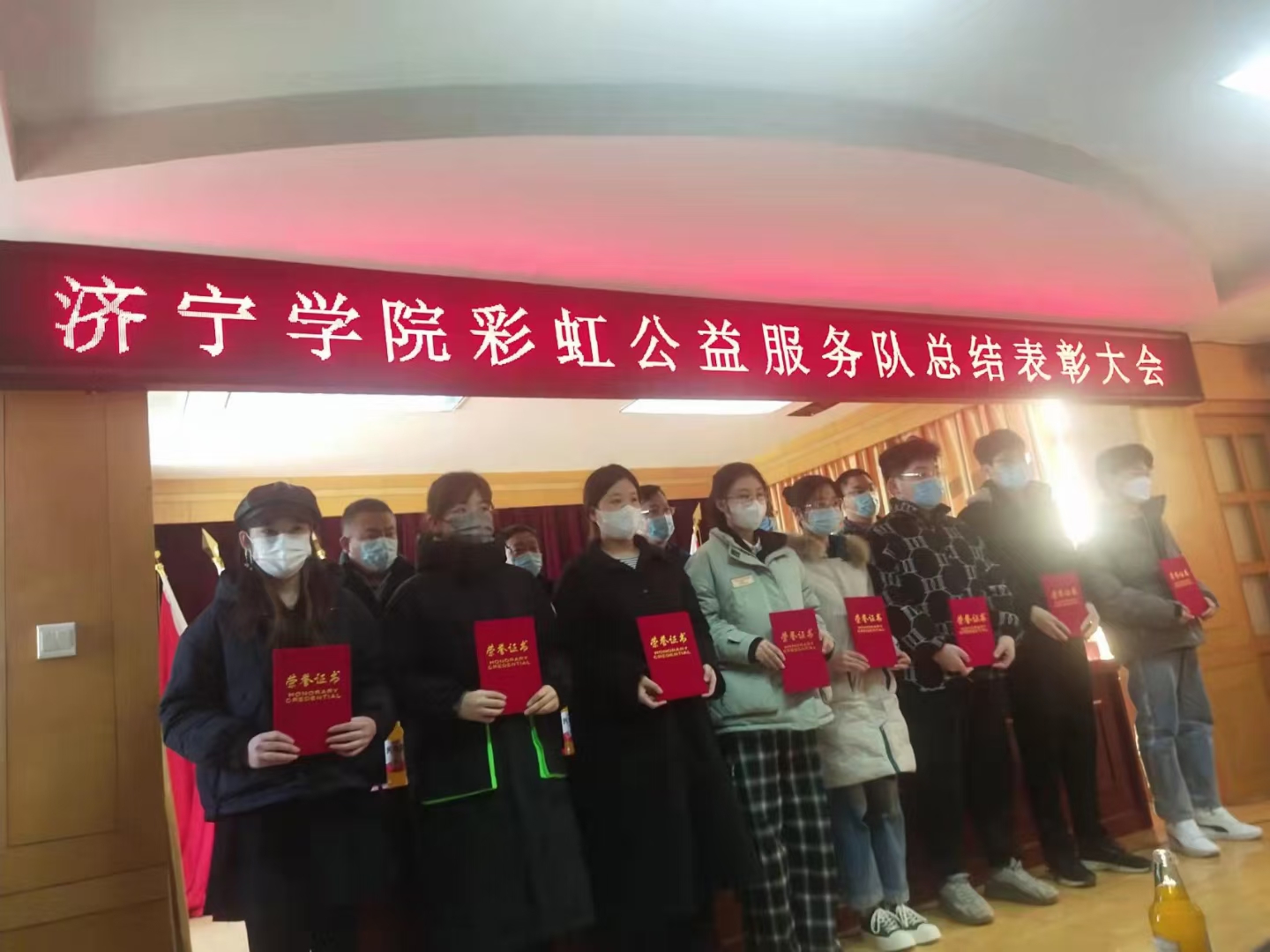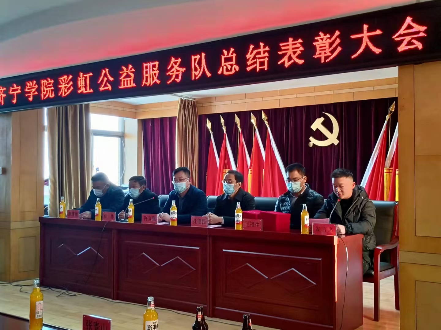 12月19日,济宁学院彩虹公益服务队2021年度工作总结表彰大会在曲阜市民政局会议室隆重召开,外国语学院党委副书记许言强、曲阜市民政局局长孔德民、曲阜市退役军人事务局局长张伟、曲阜团市委书记王福生、外国语学院学生党支部书记姜璨、曲阜彩虹公益服务中心理事长康绪虎,彩虹公益服务队全体志愿者参加会议。
