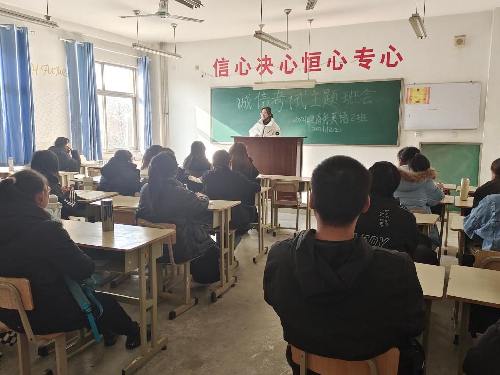 为严肃考风考纪,深化诚信理念,培养诚信为本的道德观念,让学生崇尚“诚信”,做到“不虚假”、“不欺瞒”,外国语学院于近期在各班晚自习时间组织开展以“诚信考试”为主题的班会。
