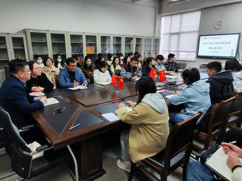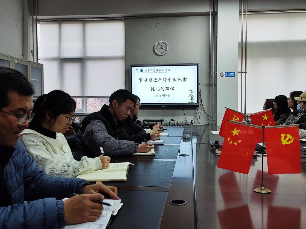 2月28日,外国语学院认真学习习近平总书记给中国冰雪健儿的回信。