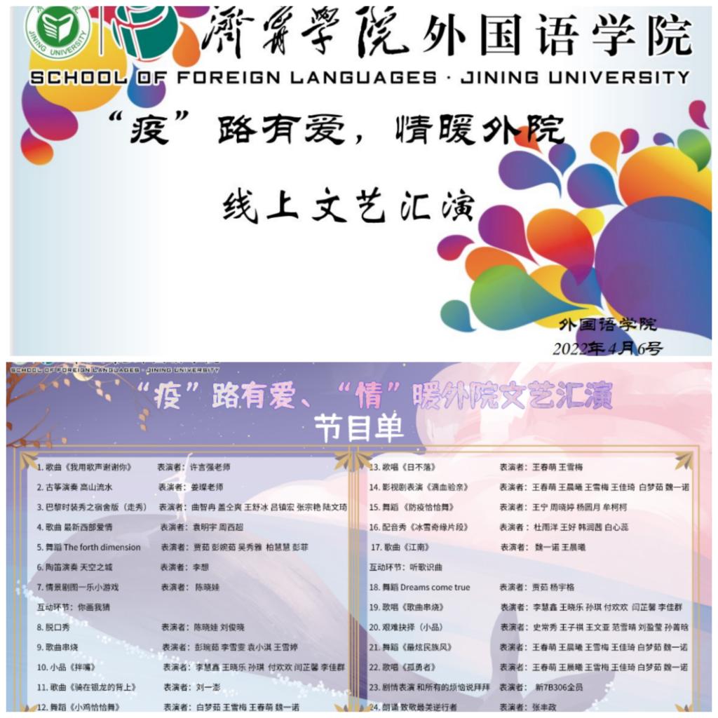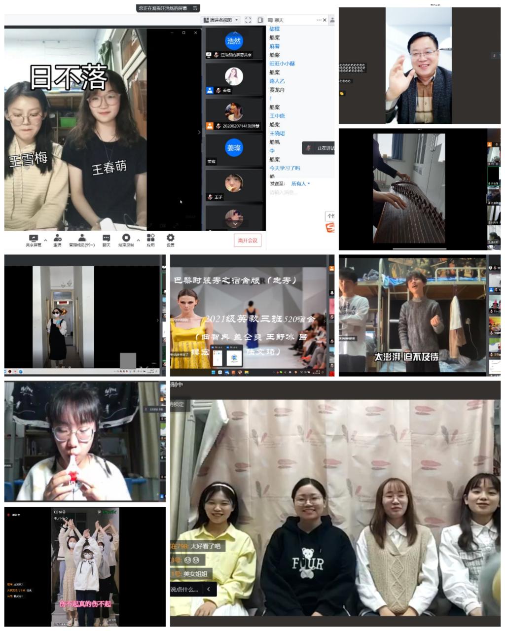 面对复杂的疫情形势,外国语学院全体师生积极响应学校号召,统筹做好各项疫情防控工作。为进一步丰富校园文化生活, 4月6日晚,外国语学院通过腾讯会议在线直播举办线上文艺汇演。