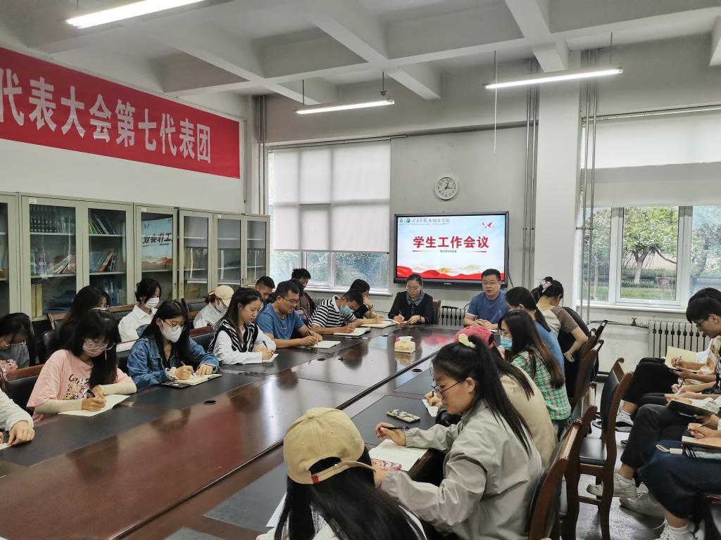 8月28日下午,外国语学院召开学生工作会议。院党委副书记许言强主持会议并讲话,全体辅导员与学生干部参加会议。