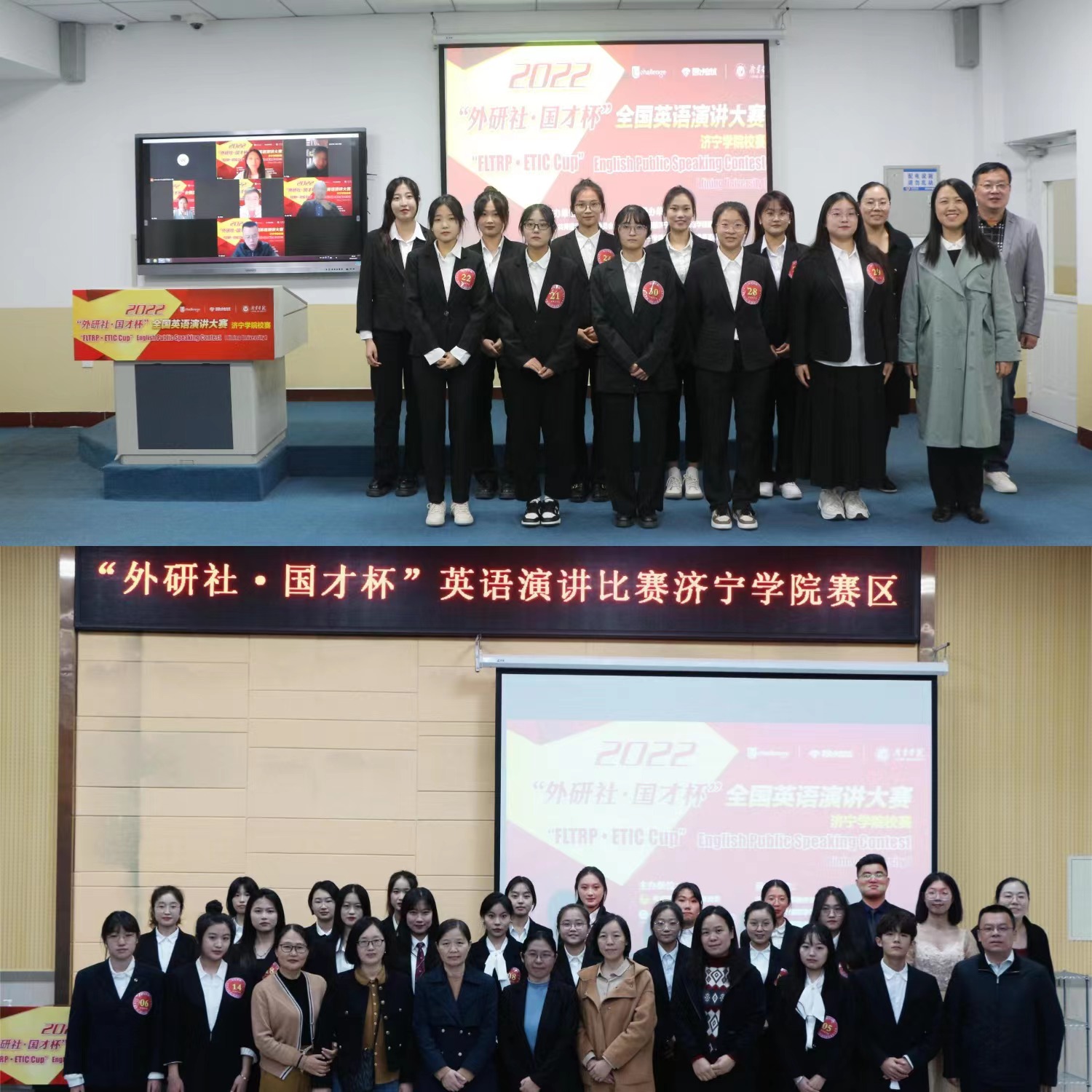 10月18日,由校团委、外国语学院主办的2022“外研社•国才杯”全国英语演讲大赛济宁学院赛区决赛在3A107隆重举行。经过初赛的严格选拔,来自全校的30位选手参加了本次复赛。外国语学院党委副书记许言强、副院长张颖、辅导员及300余名师生线上线下共同观看了比赛,外国语学院教研室主任与专任教师担任本次比赛的评委。