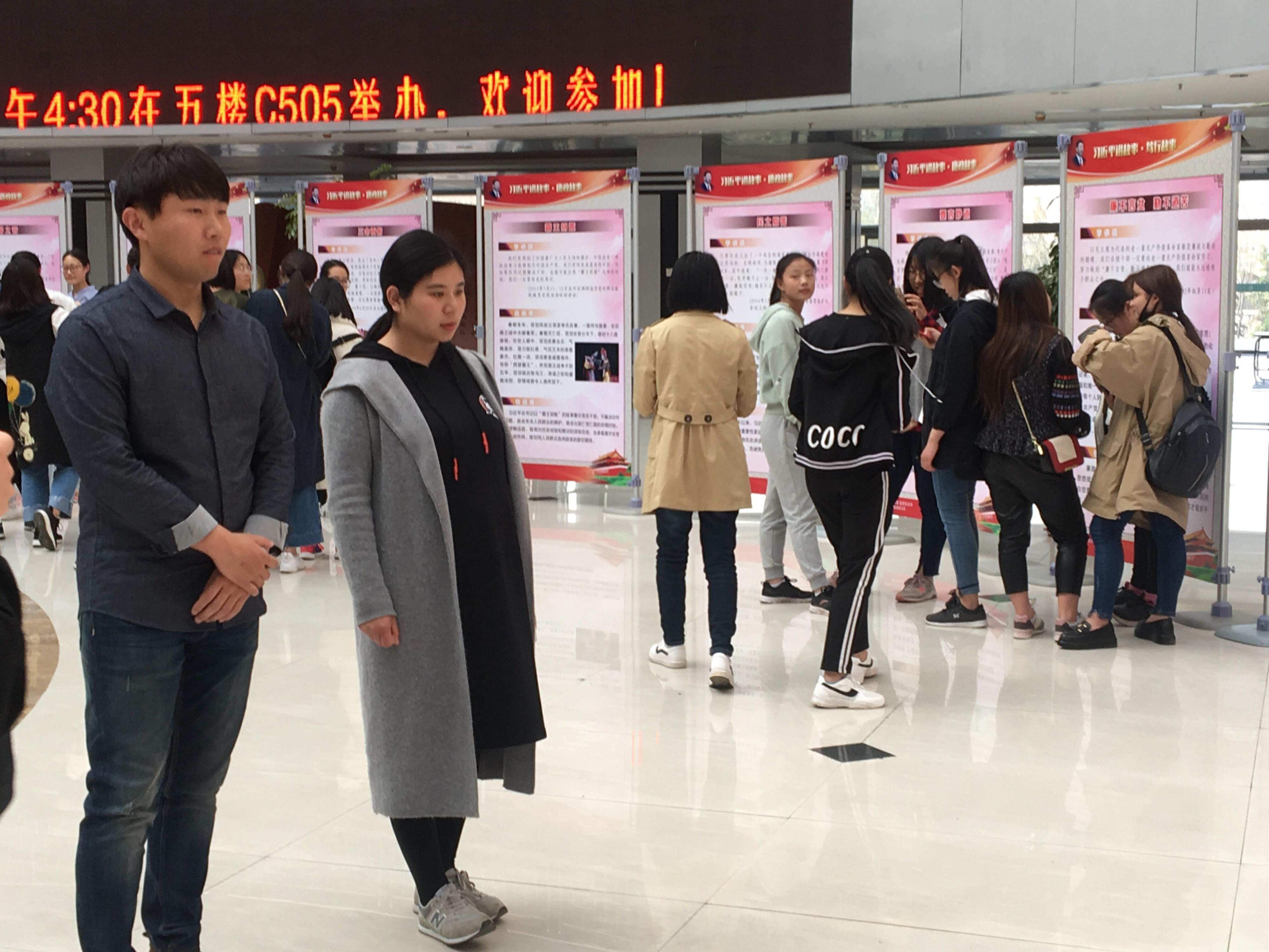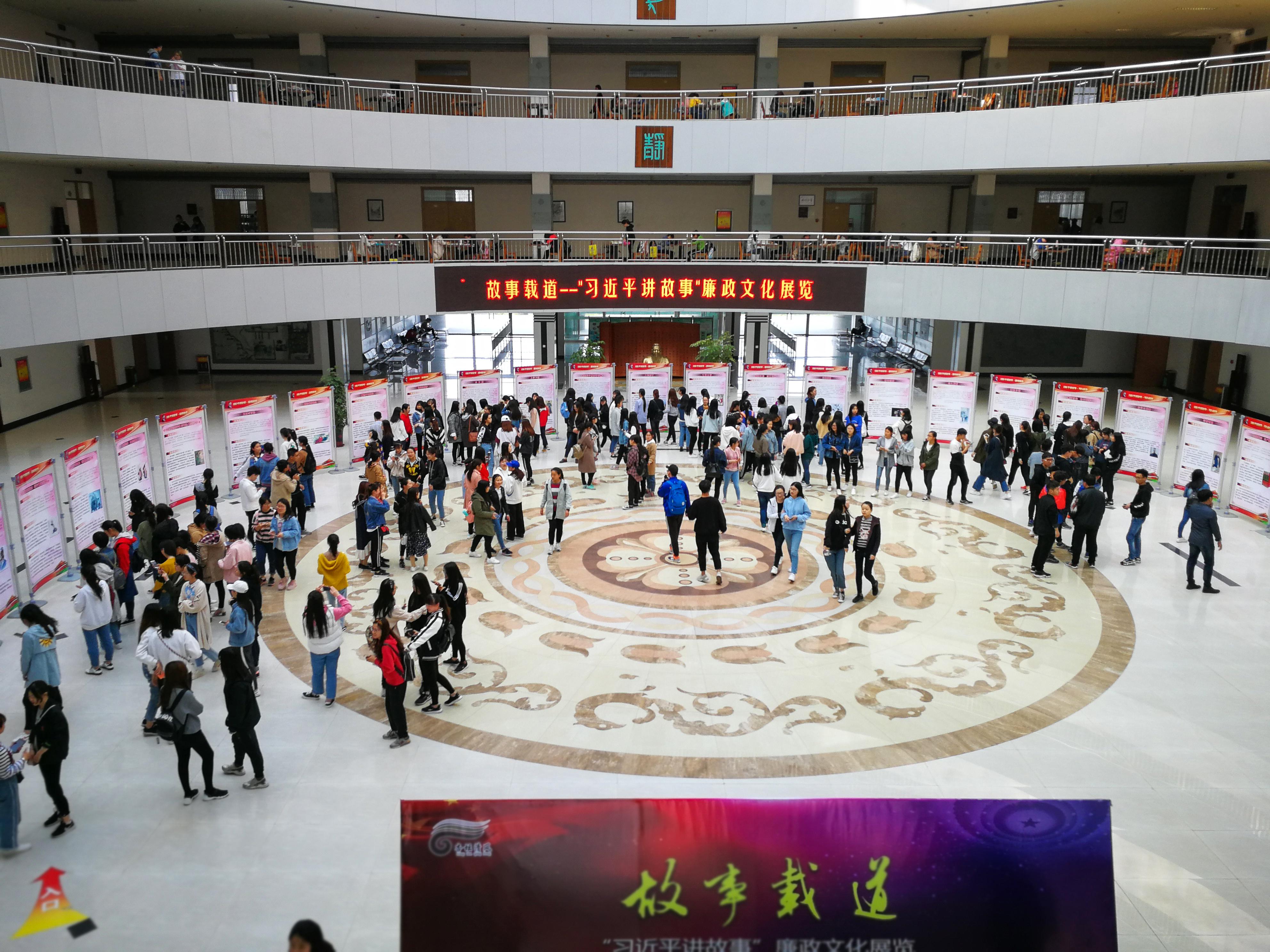 本次廉政文化展共分为前言、品格故事、廉政故事、笃行故事、结语五部分。每一块展板都有一个经典故事。老师和学生们围绕在展板前品故事、悟道理,深入学习习近平总书记讲述的精彩故事、体悟故事背后的治国理政之道。
