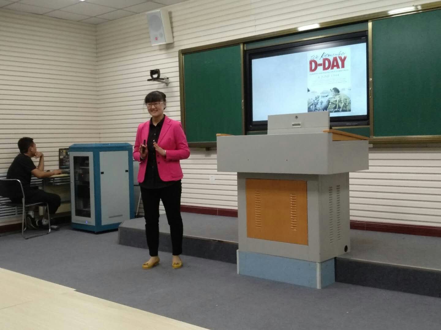 4月27日上午10:00-12:00, 外国语系教学督导、教研室主任、青年骨干教师在2号楼309微格教室进行了公开课听课评课活动。活动由外国语系张颖副主任主持。