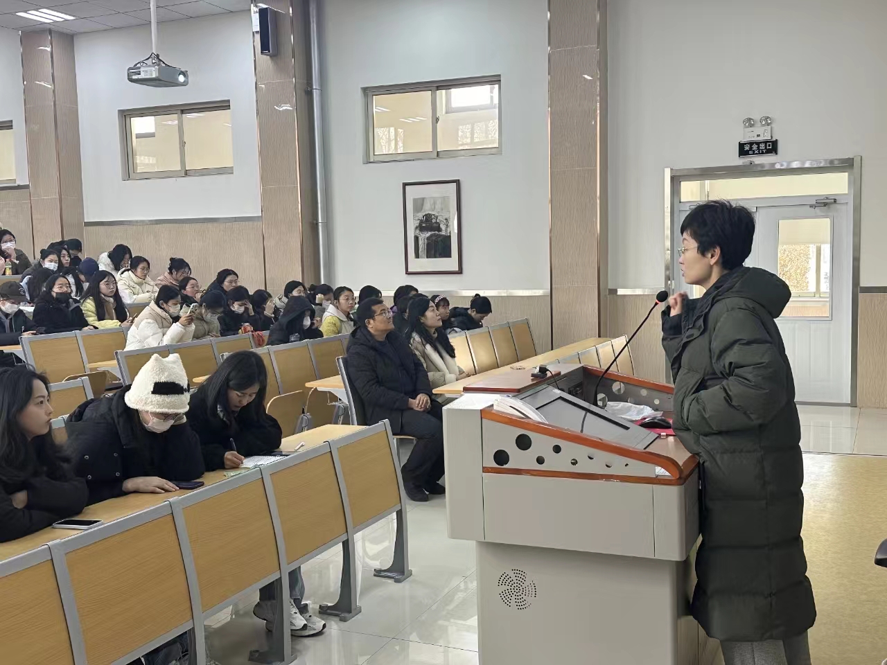 文灿强调了专业实习的重要性,希望同学们能够端正态度,认真对待实习工作,严格遵守实习单位的规章制度,保持良好的职业道德和行为规范。根据人才培养方案,闫彩霞对实习内容、时间节点及材料提交等进行了详细安排。她指出,同学们需要根据自己的实习单位和岗位,制定详细的实习计划,并按照要求提交实习日志、实习报告等相关材料。同时,她要求同学们在实习过程中要积极主动与指导老师保持密切沟通,及时解决实习中遇到的问题。张磊进一步明确了实习注意事项及相关要求,希望同学们切实做好实习各项工作,不断积累经验、提升能力,抓住就业机会,鼓励同学们勇于挑战自己,积极拓展专业能力和视野。